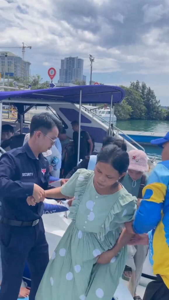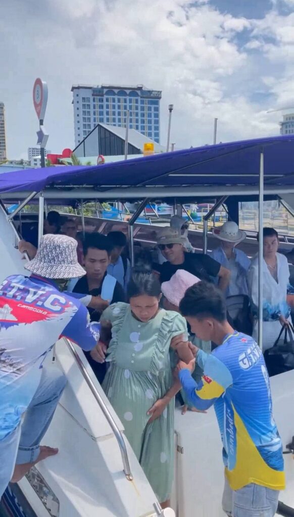 ស្រ្តីខាងលើ ត្រូវបានក្រុមការងារ របស់អ្នកឧកញ៉ា បញ្ជូនតាមអូប័រ មកកាន់កំពង់ផែទេសចរណ៍ក្រុងព្រះសីហនុដោយសុវត្ថិភាព នឹងបន្តដឹកតាមរថយន្តសង្គ្រោះក្រមហ៊ុន GTVC របស់អ្នកឧកញ៉ា យកទៅសង្គ្រោះបន្ទាន់នៅមន្ទីរពេទ្យ ក្នុងខេត្តព្រះសីហនុ៕