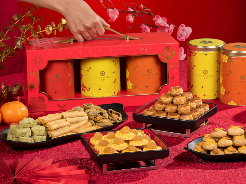 ឆ្នាំនេះ ណាហ្គាវើលដ៍ សូមបង្ហាញជូននំស្រួយប្រពៃណីចិន ៦ ប្រភេទដូចជា នំតាតរសជាតិម្នាស់ នំស្រួយរសជាតិសណ្តែកដី នំស្រួយរសជាតិ គ្រាប់ស្វាយចន្ទី នំស្រួយរសជាតិ សណ្តែកខៀវ នំសារាយសមុទ្ររសជាតិប្រាំពីរបែប និងនំរសជាតិកំពឹសក្រៀមហឹរ ដែលត្រូវបានដាក់ក្នុង ប្រអប់មានបីពណ៌យ៉ាងស្រស់ស្អាត។ សម្រាប់អតិថិជនដែលមានបំណងជូនកាដូដល់ក្រុមគ្រួសារ មិត្តភក្តិ ដៃគូពាណិជ្ជកម្ម ឬមិត្តរួមការងារ អាចជ្រើសរើសនំនាំលាភប្រចាំហាងដែលមានដាក់ក្នុងប្រអប់យ៉ាងប្រណីតដែលមានលក់នៅកន្លែងទទួលភ្ញៀវ និងទីតាំងជាច្រើនទៀតនៅក្នុងសណ្ឋាគារ។