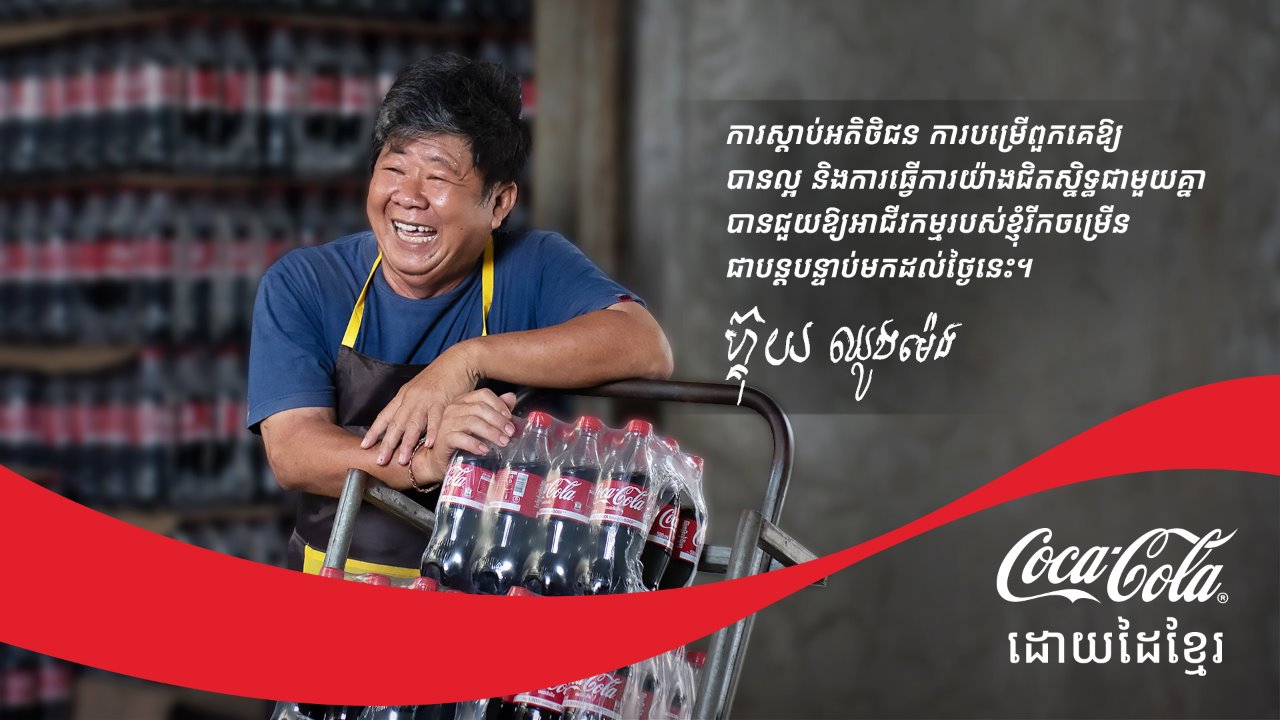 មុននឹងគ្រប់ដបឬកំប៉ុងនៃភេសជ្ជៈកូកា-កូឡានីមួយៗ បានដឹកទៅដល់សហគមន៍នានាទូទាំងប្រទេសកម្ពុជា គឺមានបុគ្គលិក របស់យើង ដែលការលះបង់របស់ពួកគាត់ ជួយ ឱ្យអាជីវកម្ម ដំណើរការឆ្ពោះទៅមុខជានិច្ច ។