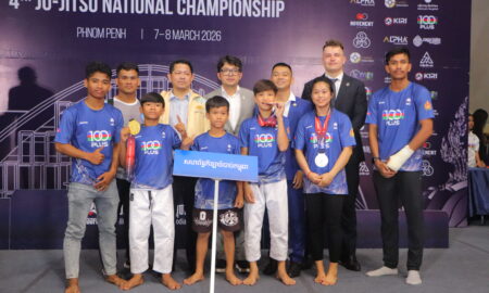 ភ្នំពេញ ៖ លោក ថោង បញ្ញាធន ប្រធានសហព័ន្ធកីឡាជឺជីតស៊ូកម្ពុជា លោក វ៉ា វណ្ណៈ អគ្គនាយករងតំណាង លោក ប៉ុន សុខ អគ្គនាយក នៃអគ្គនាយកដ្ឋានកីឡា និងលោក យានគី ស៊ីវត្ថា ប្រធានមជ្ឈមណ្ឌលជាតិ ហ្វឹកហ្វឺនកីឡានាថ្ងៃទី ៨ខែមីនា ឆ្នាំ២០២៦...
