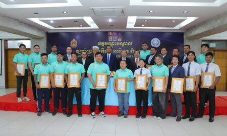 ភ្នំពេញ ៖ លោក ស៊ីយ៉ុន ស្ថាពរ អនុប្រធាននាយកដ្ឋានកីឡា ជំនួញនិងកីឡាមហាជន តំណាងលោក ប៉ែន វុទ្ធី ប្រធាននាយកដ្ឋានកីឡា ជំនួញនិងកីឡា មហាជន និងលោក ដែក ភារៈ អគ្គលេខាធិការរង តំណាង លោក វ៉ាត់ ចំរើន អគ្គលេខាធិការនៃសហព័ន្ធកីឡាការ៉ាតេកម្ពុជានាថៃ្ងទី១៣...