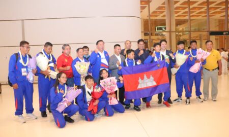 ភ្នំពេញ៖លោក ឈាង សុវណ្ណរតនា អនុប្រធានសហព័ន្ធកីឡាបញ្ចស៊ីឡាត់កម្ពុជា និងលោក អ៊ួ តារា អគ្គលេខាធិការ សហព័ន្ធកីឡាបញ្ចស៊ីឡាត់កម្ពុជាតំណាងលោក សេង ធារិន ប្រធានសហព័ន្ធ នាថ្ងៃទី២៩ ខែវិច្ឆិកា ឆ្នាំ២០២៥ នាអាកាសយានដ្ឋានអន្តរជាតិតេជោបានអញ្ជើញចូលរួមទទួលស្វាគមន៍យ៉ាងកក់ក្ដៅការវិលត្រឡប់គ្រូបង្វឹក និងកីឡាករ-កីឡាការិនីបញ្ចស៊ីឡាត់ដែលដណ្តើមមេដាយក្នុងព្រឹត្តិការណ៍ការប្រកួតកីឡាសិស្សអាស៊ាន លើកទី១៤ ជូនជាតិមាតុភូមិ នៅប្រទេសប៊្រុយណេ ដារូសាឡឹម។ ការប្រកួតកីឡាសិស្សអាស៊ាន...
