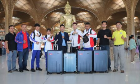 ភ្នំពេញ៖ នាយប់ថ្ងៃទី១៦ ខែតុលា ឆ្នាំ២០២៥ លោក យាន គីស៊ីវត្ថា ប្រធានមជ្ឈមណ្ឌលជាតិហ្វឹកហ្វឺនកីឡា និងជានាយរងបេសកម្ម និងលោក អ៊ួ តារា អគ្គលេខាធិការ សហព័ន្ធកីឡាបញ្ចស៊ីឡាត់កម្ពុជា តំណាងលោក សេង ធារិន ប្រធានសហព័ន្ធកីឡាបញ្ចស៊ីឡាត់កម្ពុជា បានជូនដំណើរគ្រូបង្វឹក កីឡាករ-កីឡាការិនីបញ្ចស៊ីឡាត់ នៅអាកាសយានដ្ឋានអន្តរជាតិតេជោ ដើម្បីចូលរួមប្រកួតកីឡាយុវជនអាស៊ី...