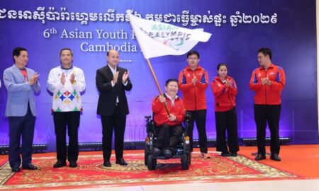 ភ្នំពេញ៖ ទង់កីឡាយុវជនអាស៊ីប៉ារ៉ាហ្គេម ដែលកម្ពុជាទទួលបន្តវេនពីប្រទេសអារ៉ាប់រួម សម្រាប់សិទ្ធិទទួលរៀបចំធ្វើម្ចាស់ផ្ទះ ការប្រកួតកីឡាយុវជនអាស៊ីប៉ារ៉ាហ្គេម លើកទី៦ ឆ្នាំ២០២៩ បាននាំយកមកដល់កម្ពុជាហើយ កាលពីយប់ថ្ងៃទី១៤ ខែធ្នូ ឆ្នាំ២០២៥ អមជាមួយសមិទ្ធផលមេដាយ ១២គ្រឿង ដែលអត្តពលិកជនពិការកម្ពុជាដណ្តើមបានពីព្រឹត្តិការណ៍កីឡាយុវជនអាស៊ីប៉ារ៉ាហ្គេម លើកទី៥ នៅប្រទេសអារ៉ាប់រួម ពីថ្ងៃទី០៧-១៤ ខែធ្នូ ឆ្នាំ២០២៥។ វត្តមានទទួលទង់កីឡាយុវជនអាស៊ីប៉ារ៉ាហ្គេមលើកទី៦ មកដល់អាកាសយានដ្ឋានអន្តរជាតិតេជោ បានធ្វើឡើងក្រោមអធិបតីភាពឯកឧត្តម...