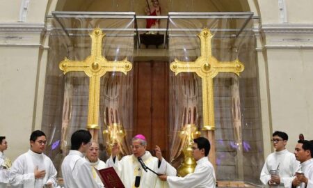 វៀតណាម៖ យោងតាមការចេញផ្សាយពីគេហទំព័រ VN Express បានប្រាប់ឲ្យដឹងថា វិហារ Notre-Dame សៃហ្គនានៅប្រទេសវៀតណាមបានបង្ហាញទិដ្ឋភាពថ្មីដ៏គួរឲ្យចាប់អារម្មណ៍ គឺឈើឆ្កាងស្រោបមាសចំនួន ២ ដែលមានកម្ពស់ជាង ៣,៧ ម៉ែត្រ និងទម្ងន់ ៤០០ គីឡូក្រាម ឥឡូវនេះកំពុងភ្លឺយ៉ាងស្រទន់នៅកន្លែងទីសក្ការៈ និងខ្ពស់ស្រឡះ។ ឈើឆ្កាងទាំងនេះត្រូវបានប្រទានពរនៅថ្ងៃទី ៨ ខែធ្នូ ដោយអាចារ្យ...