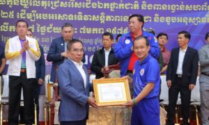 ភ្នំពេញ៖នាថ្ងៃទី៦ ខែសីហា ឆ្នាំ២០២៤ នេះ ក្រុមគណៈប្រតិភូ ចៅក្រមអន្តរជាតិ គ្រូបង្វឹក កីឡាករកាយវប្បកម្មនៃសហព័ន្ធកីឡាកាយវប្បកម្ម និងលំហាត់ប្រាណកម្ពុជាចំនួន ៤ នាក់ ខណៈកីឡាករ ស្រ៊ិន រាជ្យ មិនបានចូលរួម ដោយសាររូបលោកមានជំងឺគ្រុនពោះវៀន បានធ្វើដំណើរចេញពីប្រទេសកម្ពុជាឆ្នោះទៅចូលរួមការប្រកួតជ្រើសរើសជើងឯកកីឡាកាយវប្បកម្មអាស៊ីលើកទី ៥៦ នឹងប្រព្រឹត្តទៅនៅថ្ងៃទី០៦ ដល់ថ្ងៃទី១២ ខែសីហា ឆ្នាំ២០២៤...