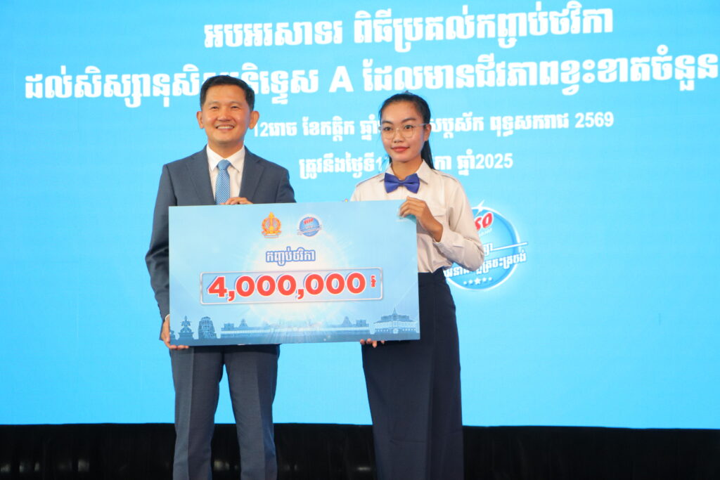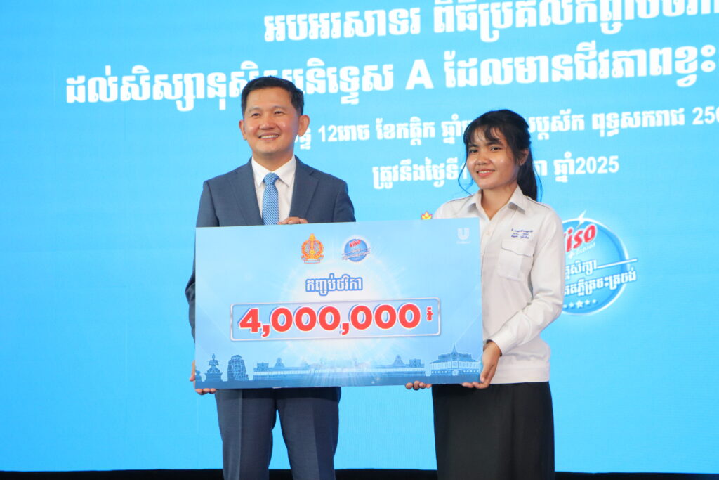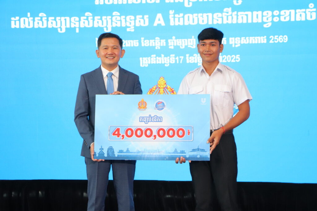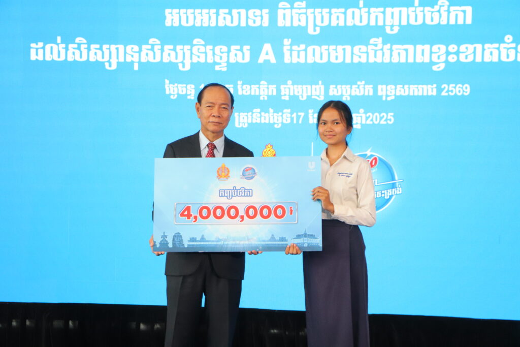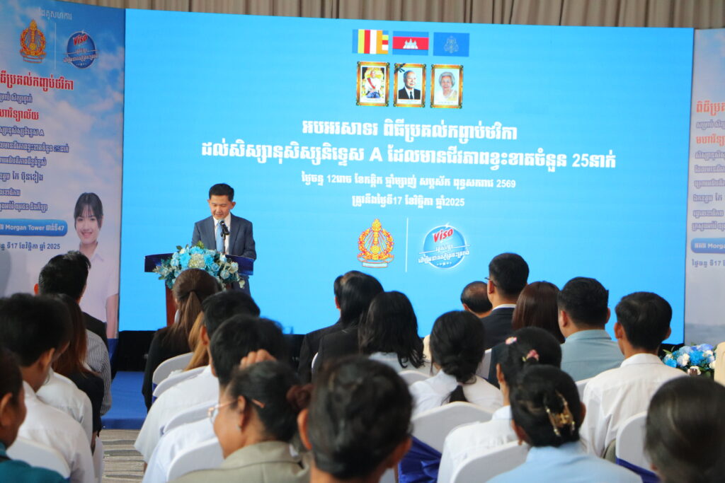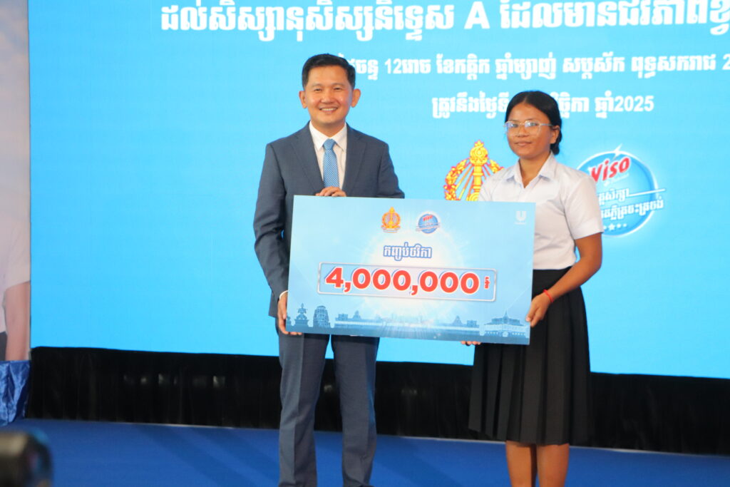 ភ្នំពេញ៖ សិស្សានុសិស្សនិទ្ទេស A ចំនួន ២៥រូប ទទួលបានកញ្ចប់ថវិកាសម្រាប់គាំទ្រការសិក្សាថ្នាក់មហាវិទ្យាល័យពីសាប៊ូវីសូពិសេស ដែលជាម៉ាកផលិតផលនៃក្រុមហ៊ុនយូនីលីវើកម្ពុជា (Unilever Cambodia) ក្នុងព្រឹត្តិការណ៍ដ៏វិសេសវិសាល ពោរពេញដោយអារម្មណ៍រំភើបអបអរមោទនភាព និងក្តីសង្ឃឹម កាលពីថ្ងៃចន្ទ ទី១៧ ខែវិច្ឆិកា ឆ្នាំ២០២៥។ ព្រឹត្តិការណ៍ដ៏គួរឲ្យកត់សម្គាល់មួយនេះបានបង្ហាញពី ការប្តេជ្ញាចិត្តយ៉ាងខ្ជាប់ខ្លួនរបស់ម៉ាកផលិតផលមួយនេះ ក្នុងការលើកស្ទួយប្រទេសកម្ពុជាតាមរយៈវិស័យអប់រំ។