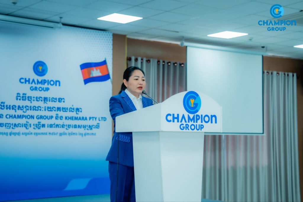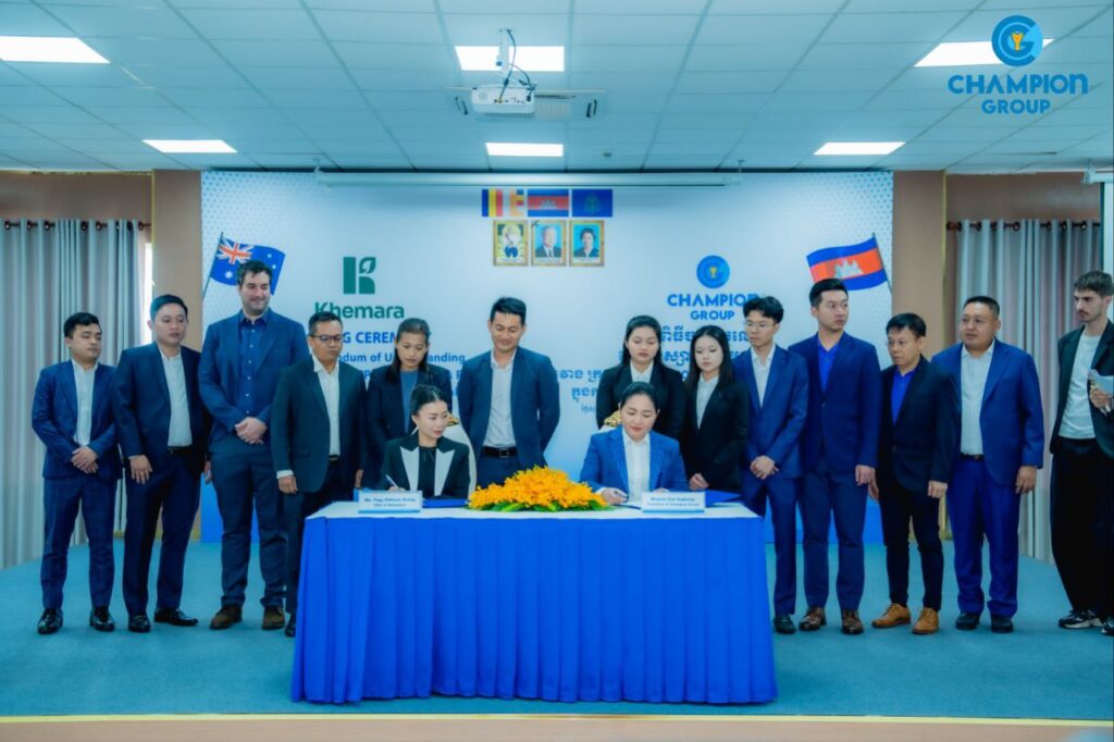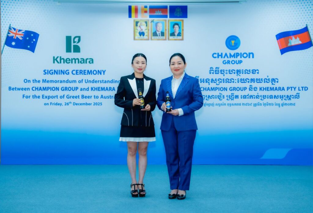 ភ្នំពេញ៖ ក្រុមហ៊ុន ឆេមពានគ្រុប បានចុះហត្ថលេខាលើអនុស្សាណៈយោគយល់គ្នាជាមួយ ក្រុមហ៊ុន ខេមរា (Khemera) ក្នុងការនាំចេញស្រាបៀហ្គ្រីតទៅកាន់ប្រទេសអូស្រ្តាលី នៅក្នុងពិធីការចុះហត្ថលេខារវាងក្រុមហ៊ុនទាំងពីរ ដែលបានរៀបចំកាលនាព្រឹកថ្ងៃសុក្រ ៧កើត ខែបុស្ស ឆ្នាំម្សាញ់ សប្តស័ក ពុទ្ធសករាជ ២៥៦៩ ត្រូវនឹងថ្ងៃទី២៦ ខែធ្នូ ឆ្នាំ២០២៥។ កិច្ចសហប្រតិបត្តិការនេះគឺជាជំហានថ្មីមួយ ឆ្ពោះទៅកាន់ទីផ្សារអន្តរជាតិ ដោយមោទនភាព របស់ក្រុមហ៊ុនឆេមពានគ្រុប ដែលជាក្រុមហ៊ុនកូនខ្មែរ ១០០%។