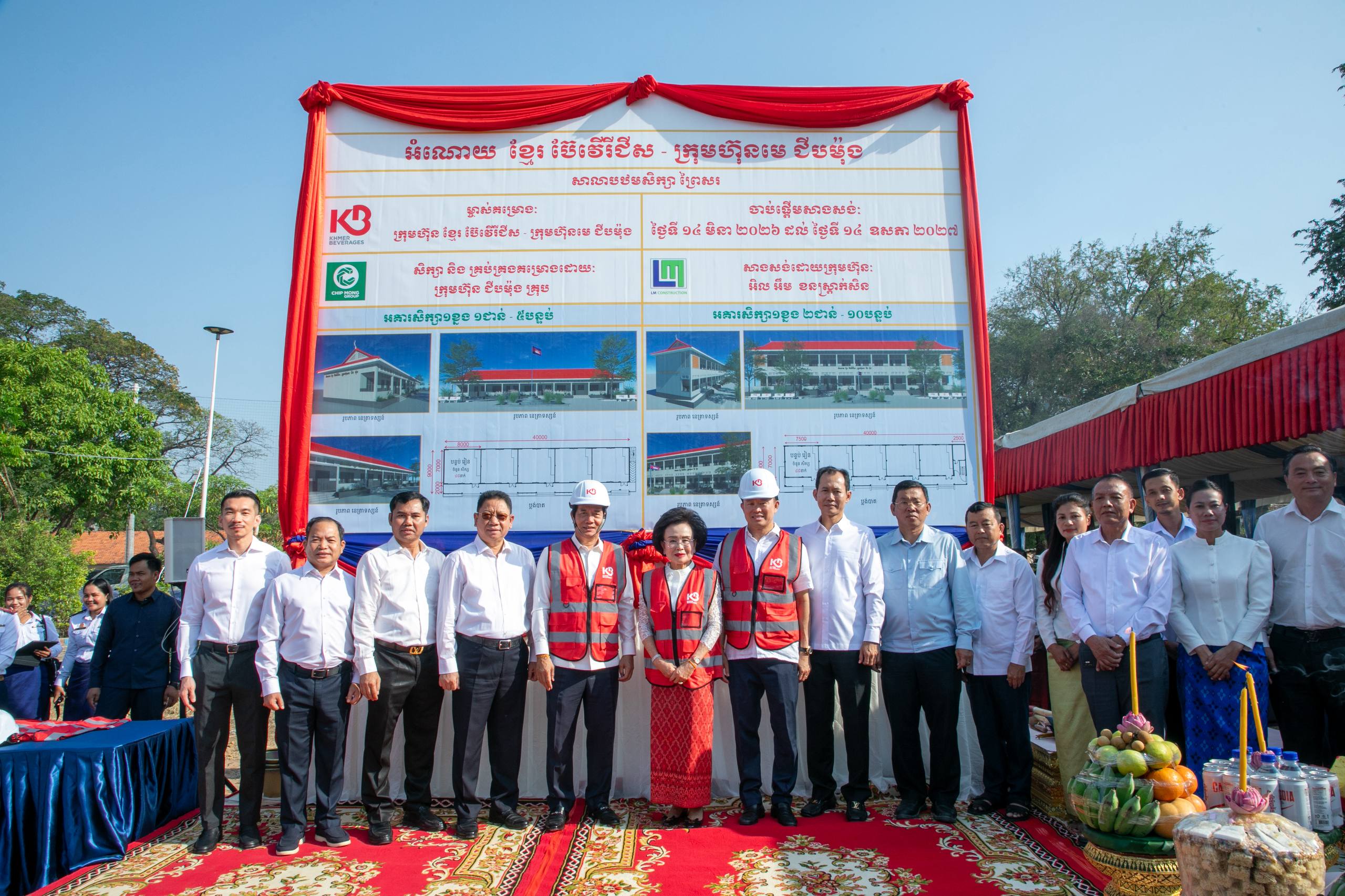 (ភ្នំពេញ)៖ ក្រោមអធិបតីភាពរបស់ឯកឧត្តម ឃួង ស្រេង អភិបាលរាជធានីភ្នំពេញ លោកអ្នកឧកញ៉ា ភាព ហៀក ស្ថាបនិកក្រុមហ៊ុន ជីប ម៉ុង និងអ្នកឧកញ៉ា លាង ម៉េង សហស្ថាបនិកក្រុមហ៊ុន ខ្មែរ ប៊ែវើរីជីស បានអញ្ជើញចូលរួមក្នុងពិធីក្រុងពាលី ជាមួយលោកគ្រូ អ្នកគ្រូ សិស្សានុសិស្ស និងមន្ត្រីរាជការជាច្រើនរូប ដើម្បីបើកការដ្ឋានសាងសង់អគារសិក្សា ១ ខ្នង កម្ពស់ ៣ ជាន់ មានចំនួន ១៥ បន្ទប់ ព្រមទាំងរបងសាលា នៅសាលាបឋមសិក្សាព្រៃស ស្ថិតនៅសង្កាត់ព្រៃស ខណ្ឌដង្កោ ដែលជាអំណោយរបស់ក្រុមហ៊ុន ខ្មែរ ប៊ែវើរីជីស ដែលជាពាណិជ្ជកម្មមួយក្រោមក្រុមហ៊ុនមេ ជីប ម៉ុង។