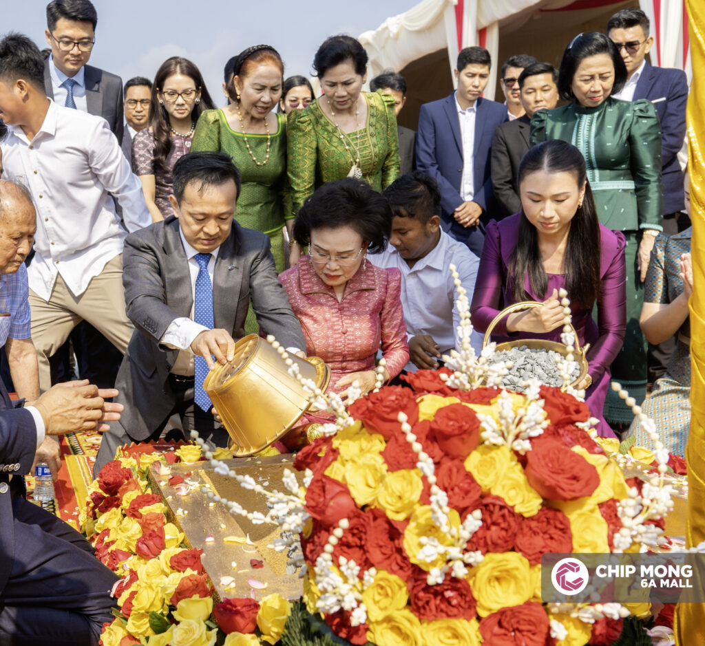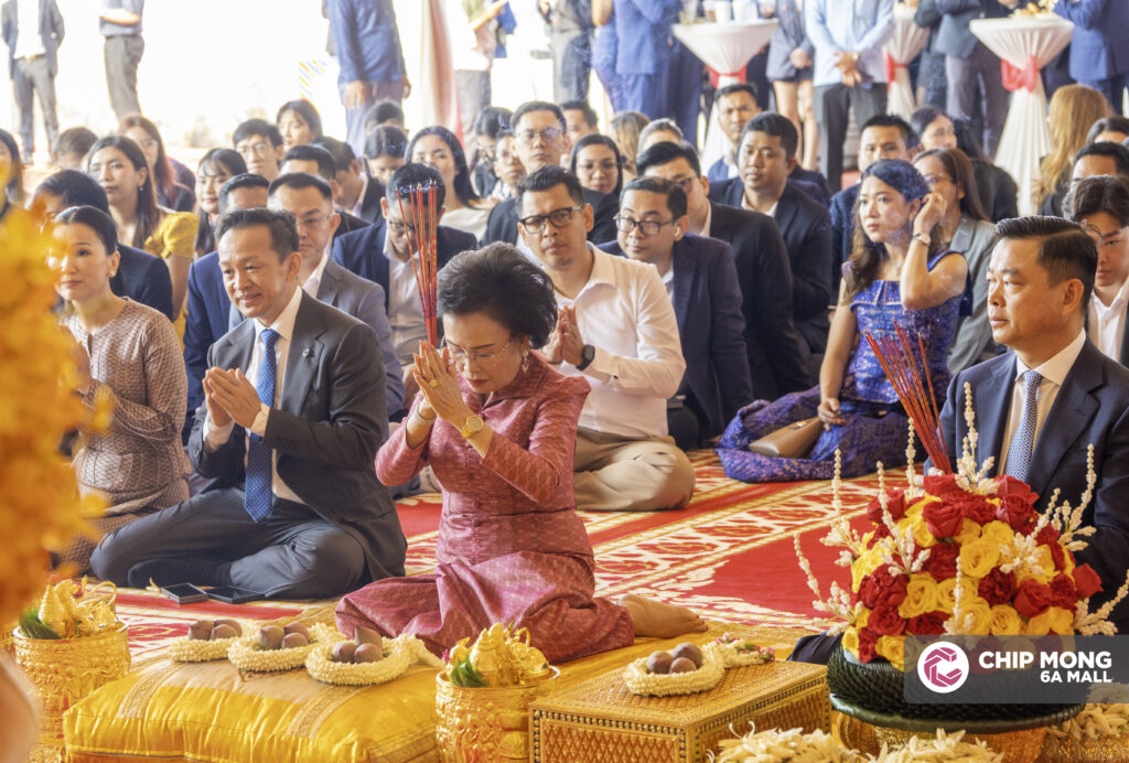 ពិធីបញ្ចុះបឋមសិលានេះ ត្រូវបានប្រព្រឹត្ដទៅក្រោមអធិបតីភាពរបស់លោកអ្នកឧកញ៉ា ភាព ហៀក ស្ថាបនិកក្រុមហ៊ុន ជីប ម៉ុង លោកអ្នកឧកញ៉ា លាង ឃុន សហស្ថាបនិក ក្រុមហ៊ុន ជីប ម៉ុង អ្នកឧកញ៉ា លាង ម៉េង សហស្ថាបនិក ក្រុមហ៊ុន ជីប ម៉ុង អ្នកឧកញ៉ា លាង ហួង (ហេនរី) អគ្គនាយកពហុពាណិជ្ជកម្ម ក្រុមហ៊ុន ជីប ម៉ុង លែន លោកជំទាវ គឹម ចាន់ណា សមាជិកក្រុមប្រឹក្សាភិបាលក្រុមហ៊ុន ជីប ម៉ុង លោកជំទាវ លី សុខឆេង នាយិកាក្រុមហ៊ុន ជីប ម៉ុង រីថែល និងលោកជំទាវ គីម ចាន់ថា អគ្គនាយិការក្រុមហ៊ុន ជីប ម៉ុង ត្រេឌីង ព្រមទាំងថ្នាក់ដឹកនាំជាន់ខ្ពស់របស់ក្រុមហ៊ុនជាច្រើនរូបទៀត។
