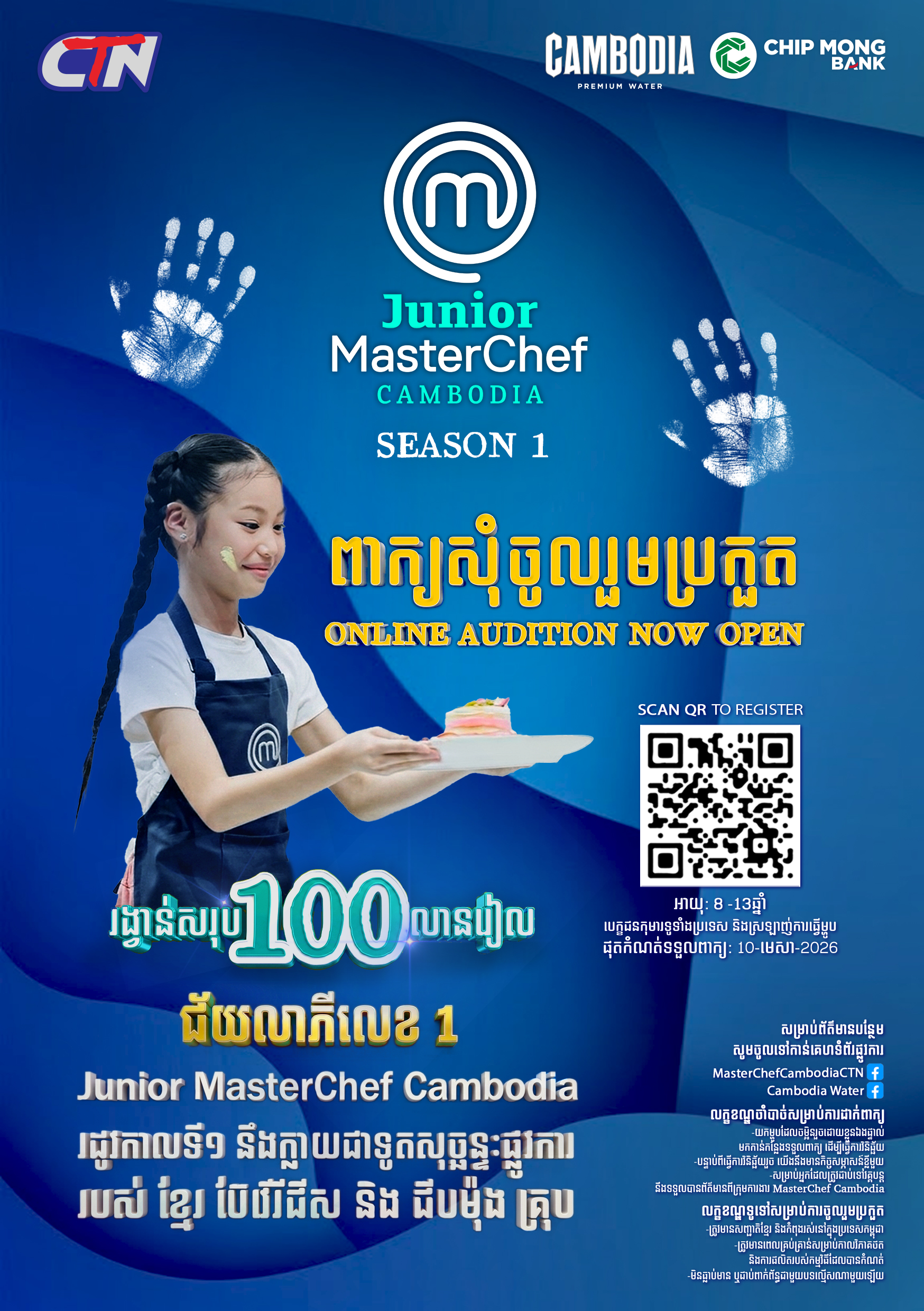 សូមតាមដានព័ត៌មានបន្ថែមនៅលើ Facebook ផ្លូវការ៖ MasterChef Cambodia & Cambodia Water