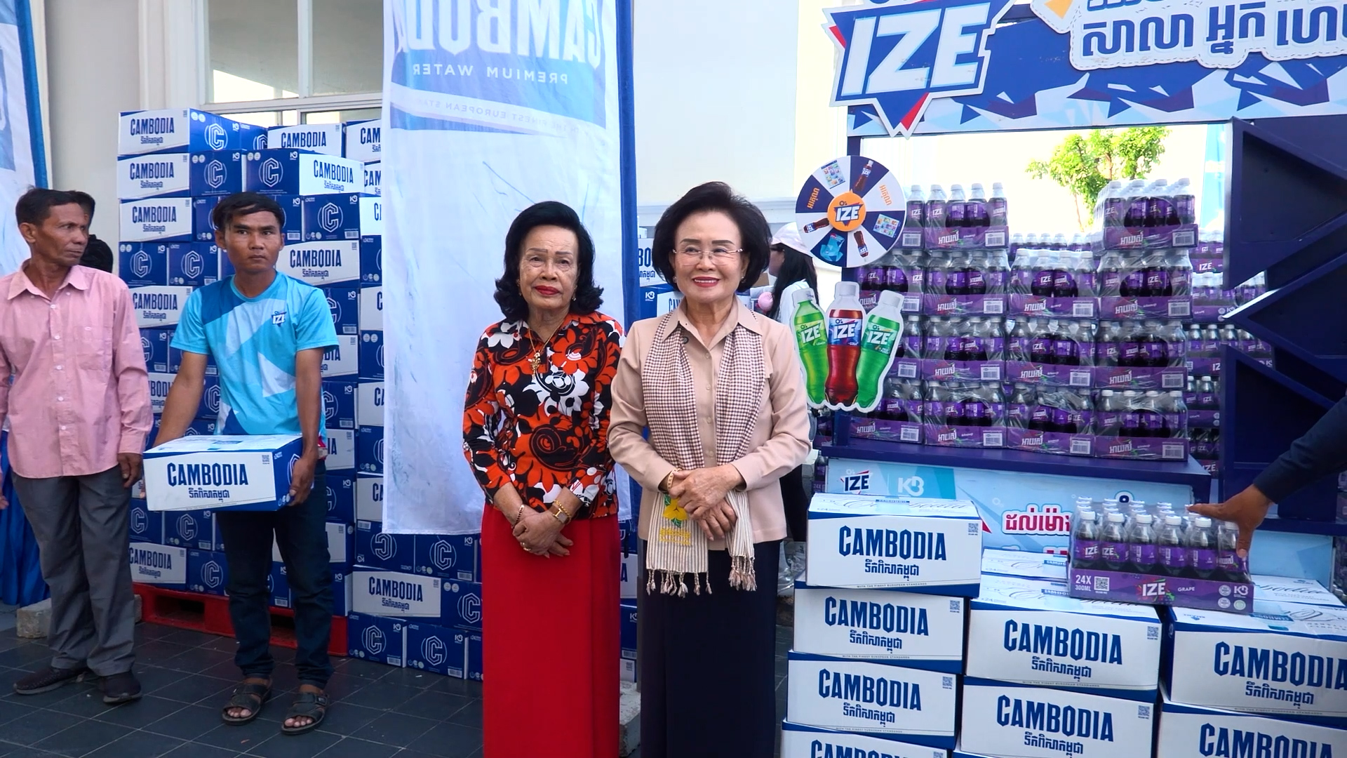 បន្ថែមពីនេះ លោកអ្នកឧកញ៉ា ភាព ហៀក ស្ថាបនិកក្រុមហ៊ុន ជីប ម៉ុង បានចុះមកចែកជូនទឹកពិសាកម្ពុជា និងអាយស៍រសជាតិទំពាំងបាយជូរ សរុបចំនួន ២ ម៉ឺនដប រួមទាំងថវិកាមួយចំនួន ជូនដល់អ៊ុំៗអ្នករត់ស៊ីក្លូ ដែលបង្ហាញពីស្មារតីរួបរួមគ្នា ឈរនៅកៀកសង្គមខ្មែរ ក្នុងនាមជាសហគ្រិនខ្មែរ។ លើសពីនេះ លោកអ្នកឧកញ៉ា លាង ឃុន និងអ្នកឧកញ៉ា លាង ម៉េង សហស្ថាបនិកក្រុមហ៊ុន ជីប ម៉ុង ដែលជាក្រុមហ៊ុនមេរបស់ ខ្មែរ ប៊ែវើរីជីស ក៏បានធ្វើការចែកជូនទឹកពិសាកម្ពុជាដោយផ្ទាល់ ក៏ដូចជាសំណះសំណាលជាមួយបងប្អូនខ្មែរ បង្ហាញពីភាពជាសហគ្រិនខ្មែរ ហើយតែងតែចូលរួមយ៉ាងសកម្មក្នុងសង្គមផ្ទាល់តែម្តង។