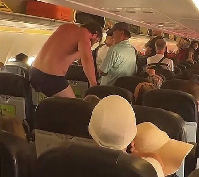 អ្នកដំណើរបានព្យាយាមធ្វើឲ្យគាត់ស្ងប់ចិត្ត ប៉ុន្តែគាត់ចាប់ផ្តើមស្រែក និងព្យាយាមឈ្លោះប្រកែកជាមួយអ្នកបម្រើលើយន្តហោះ។ នៅទីបញ្ចប់ បុរសនោះបានដោះសម្លៀកបំពាក់ចេញរហូតដល់ខោទ្រនាប់ ហើយរត់ជុំវិញកាប៊ីន ដោយព្យាយាមចុះពីយន្តហោះ។