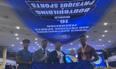 ឥណ្ដូណេស៊ី៖ លោកស្រី អេមី សារីរ៉ុម គ្រូបង្វឹក បានប្រាប់តាមអនឡាញពីឥណ្ដូណេស៊ី ឲ្យដឹងថា កីឡាករកាយវប្បកម្ម ស្រ៊ិន រាជ្យ របស់កម្ពុជាដណ្តើមបានមេដាយសំរឹទ្ធ លើវិញ្ញាសា កម្ពស់ 1.80 Cm ទម្ងន់ធ្ងន់ ព្រឹត្តិការណ៍ការប្រកួតជ្រើសរើសជើងឯក កីឡាកាយវប្បកម្មពិភពលោក ឆ្នាំ២០២៥ លើកទី១៦ (The 16...