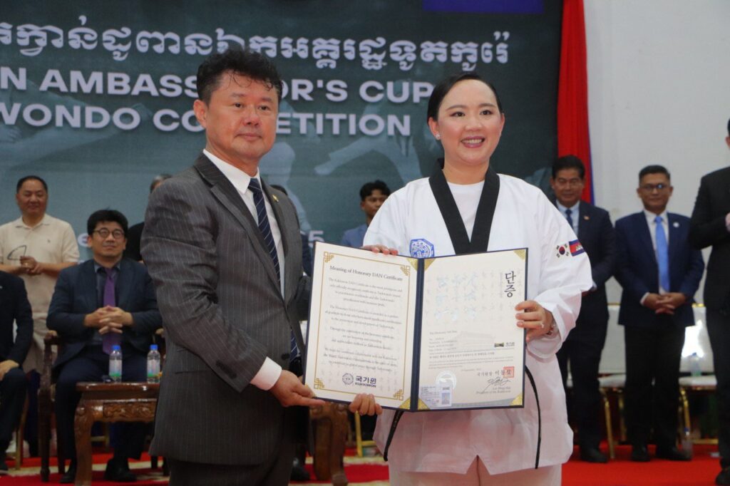 ក្នុងឱកាសនេះដែរ លោកបណ្ឌិតសភាចារ្យ ឧបនាយករដ្ឋមន្ត្រី បានទទួលវិញ្ញាបនបត្រ កិត្តិយសកម្រិតទី៧ (The Honorary 7Th DAN ) របស់ Kukkiwon ដែលបំពាក់ដោយ ដោយលោកគ្រូបង្វឹក ឆយ យ៉ុងសុក តំណាង Kukkiwon។ The Honorary 7Th DAN ជាវិញ្ញាបនបត្រដ៏មានតម្លៃខ្ពស់បំផុត និងតែមួយគត់ ទទួលស្គាល់ជាផ្លូវការនៅក្នុងវិស័យតេក្វាន់ដូទូទាំងពិភពលោក ត្រូវបានផ្តល់ជូនបុគ្គលដែលបានចូលរួមចំណែកយ៉ាងសំខាន់ក្នុងការលើកកម្ពស់និងអភិវឌ្ឍកីឡាតេក្វាន់ដូ៕