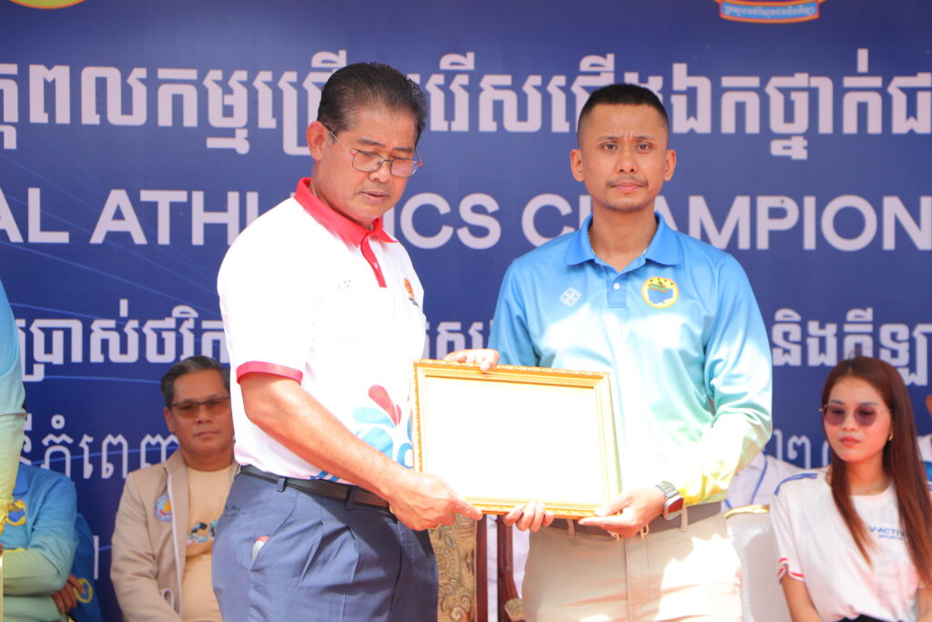 លោក ប៉ុន សុខ អគ្គនាយកនៃអគ្គនាយកដ្ឋានកីឡានៃក្រសួងអប់រំ យុវជន និងកីឡា និងលោក ដួង មាសចំរើន ប្រធានសហព័ន្ធខ្មែរ អត្តពលកម្មស្ម័គ្រចិត្ត សមាជិតប្រតិបតិ្តសហព័ន្ធ និងតំណាងប្រតិភូកីឡា រាជធានីខេត្តទំាង ១៦នាថ្ងៃទី៥ ខែតុលា ឆ្នាំ២០២៥ បានអញ្ជើញ ចូលរួមបិទ ការប្រកួតកីឡា អត្តពលកម្មជ្រើសរើស ជើងឯកថ្នាក់ជាតិ ប្រចាំ ឆ្នាំ២០២៥ នៅហពុកីឡដ្ឋានជាតិអូឡាំពិក ។