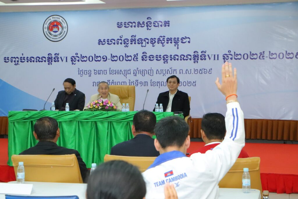 ក្នុងឱកាសមហាសន្និបាតសហព័ន្ធកីឡាវូស៊ូកម្ពុជា បញ្ចប់អាណត្តិទី៦ ឆ្នាំ២០២១-២០២៥ និងបន្តអាណត្តិទី៧ឆ្នាំ២០២៥-២០២៩ ដោយមានការអញ្ជើញចូលរួមពីសំណាក់លោក វ៉ាត់ ចំរើន រដ្ឋលេខាធិការនៃក្រសួងអប់រំ យុវជន និងកីឡា និងជាអគ្គលេខធិការនៃគណៈកម្មាធិការជាតិអូឡាំពិកកម្ពុជា លោក ព្រំ ប៉ុណ្ណយី ទីប្រឹក្សាក្រសួងអប់រំយុវជន និងកីឡា និងលោក ទុយ វិច្ឆិកា ប្រធានការិយល័យកីឡាទំនើបតំណាងលោក ប៉ែន វុទ្ធី ប្រធាននាយកដ្ឋានកីឡាជំនាញ និងកីឡាមហាជន ព្រមទំាងអ្នកតំណាងក្លិប និងសមាគមកីឡាវូស៊ូ។