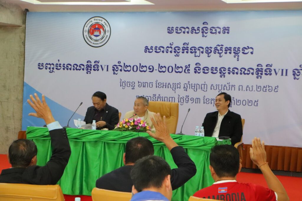 ក្នុងឱកាសមហាសន្និបាតសហព័ន្ធកីឡាវូស៊ូកម្ពុជា បញ្ចប់អាណត្តិទី៦ ឆ្នាំ២០២១-២០២៥ និងបន្តអាណត្តិទី៧ឆ្នាំ២០២៥-២០២៩ ដោយមានការអញ្ជើញចូលរួមពីសំណាក់លោក វ៉ាត់ ចំរើន រដ្ឋលេខាធិការនៃក្រសួងអប់រំ យុវជន និងកីឡា និងជាអគ្គលេខធិការនៃគណៈកម្មាធិការជាតិអូឡាំពិកកម្ពុជា លោក ព្រំ ប៉ុណ្ណយី ទីប្រឹក្សាក្រសួងអប់រំយុវជន និងកីឡា និងលោក ទុយ វិច្ឆិកា ប្រធានការិយល័យកីឡាទំនើបតំណាងលោក ប៉ែន វុទ្ធី ប្រធាននាយកដ្ឋានកីឡាជំនាញ និងកីឡាមហាជន ព្រមទំាងអ្នកតំណាងក្លិប និងសមាគមកីឡាវូស៊ូ។