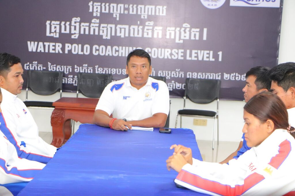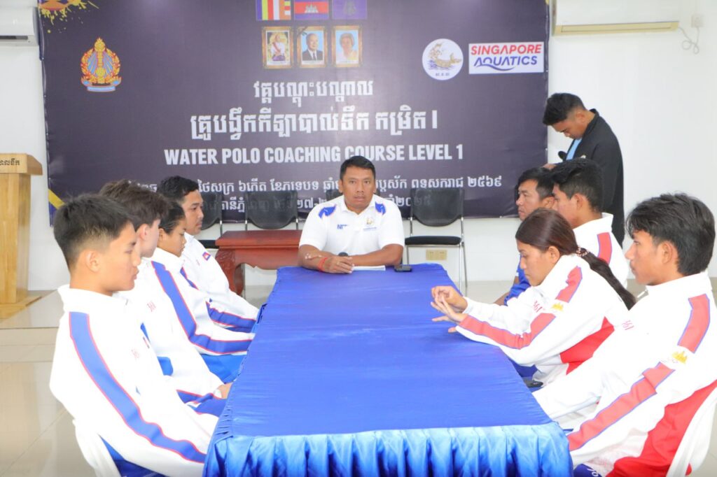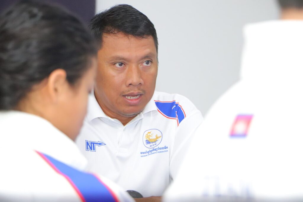 ភ្នំពេញ ៖ លោក ហែម គីរី អគ្គលេខាធិការ សហព័ន្ធខ្មែរកីឡាហែលទឹក តំណាងលោក ស៊ុន ចាន់ថុល ឧបនាយករដ្ឋមន្រ្តី អនុប្រធានទី១ ក្រុមប្រឹក្សាអភិវឌ្ឍន៍កម្ពុជា និង ជាប្រធានសហព័ន្ធខ្មែរកីឡាហែលទឹក នាថ្ងៃទី២២ ខែតុលា ឆ្នាំ២០២៥ នេះបានជួបសំណេះសំណាល និងជូនដំណើរគ្រូបង្វឹក និងកីឡាករ-កីឡាការិនីហែលទឹកជម្រើសជាតិ កម្ពុជាចំនួន ៧ រូប ទៅចូលរួមការ ប្រកួតកីឡាយុវជន អាស៊ីហ្គេមលើកទី៣ ឆ្នាំ២០២៥ នៅប្រទេសបារ៉ែន នៅសាលប្រជុំ របស់សហព័ន្ធក្នុង ពហុកីឡដ្ឋានជាតិ។