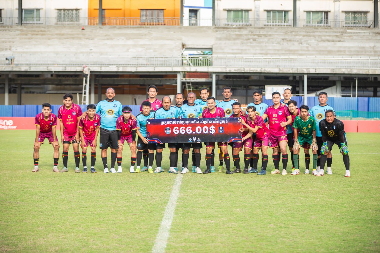 ភ្នំពេញ ៖ ក្រុមបាល់ទាត់វ័យចាស់ K8 Football Team ក្រោមដឹកនាំដោយ លោក រិទ្ធិ ឌីកា ប្រធានបច្ចេកទេសក្លឹបបាល់ទាត់អាជីព ព្រះខ័នរាជ ស្វាយរៀង បានធ្វើការប្រកួតមិត្តភាពជាមួក្រុមបាល់ទាត់ Vlogger All Star ក្រោមប្រធានបទ “ការប្រកួតបាល់ទាត់ប្រមូលថវិកា គាំទ្រវីរកងទ័ពជួរមុខ” នាថ្ងៃទី២៣ ខែតុលា ឆ្នាំ២០២៥ នៅទីលានវាលស្មៅកីឡដ្ឋានស្តាតចាស់ ទទួលបានការគាំទ្រ យ៉ាងខ្លាំង ពីសំណាក់ទស្សនិកជនៗ ។