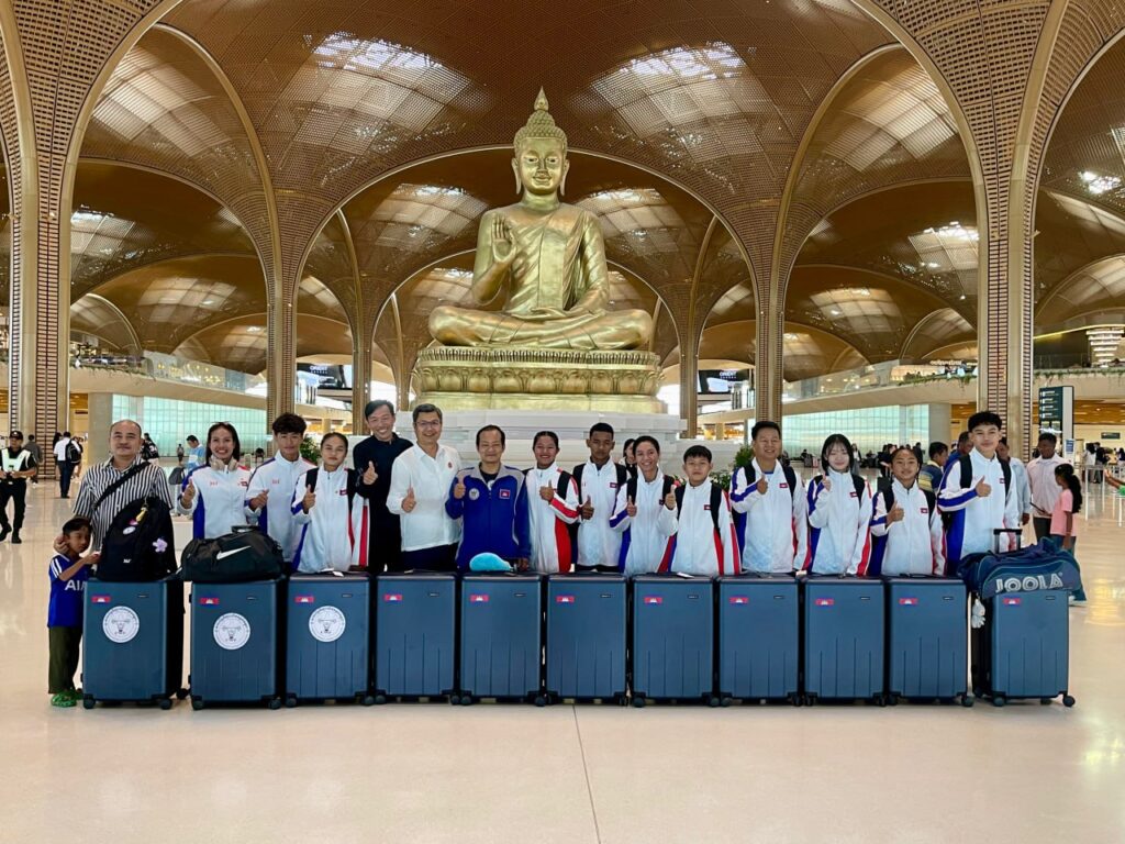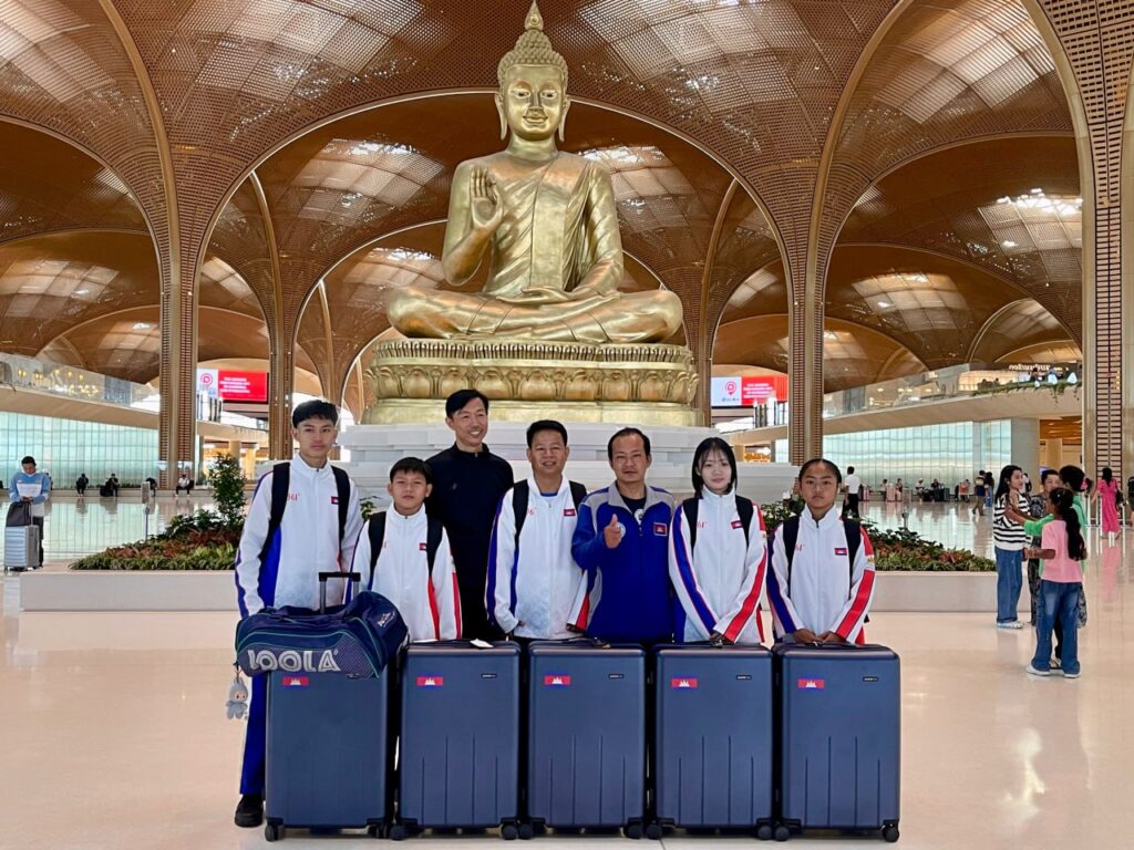 ភ្នំពេញ ៖ នាថ្ងៃទី២៣ ខែតុលា ឆ្នាំ២០២៥ លោក ផាត បញ្ញាសុជាតក៌តំណាងលោក យាន គីស៊ីវត្ថា ប្រធានមជ្ឈមណ្ឌលជាតិហ្វឹកហ្វឺនកីឡា និងជានាយរងបេសកម្ម និងលោក ហេង សុខជាតិ អគ្គលេខាធិការតំណាងសន្តិបណ្ឌិត គៀត ច័ន្ទថារិទ្ធ រដ្ឋលេខាធិការក្រសួងមហាផ្ទៃ និងជាប្រធានសហព័ន្ធកីឡាវាយកូនឃ្លីលើតុកម្ពុជា បានជូនដំណើរក្រុមកីឡាករ-កីឡាការិនីវាយកូនឃ្លីលើតុ និងក្រុមកីឡាករ-កីឡាការិនី លើកទម្ងន់កម្ពុជាដែលធ្វើដំណើរចូលរួមព្រឹត្តិការណ៍ ប្រកួតកីឡាយុវជនអាស៊ី លើកទី៣ នៅប្រទេសបារ៉ែន នៅអាកាសយានដ្ឋានអន្តរជាតិតេជោ ។