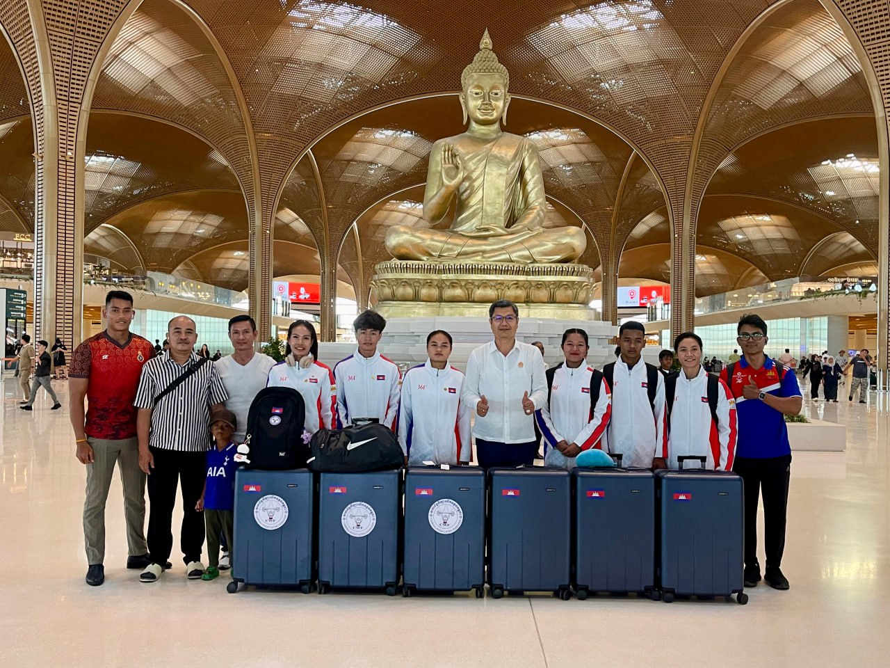 ភ្នំពេញ ៖ នាថ្ងៃទី២៣ ខែតុលា ឆ្នាំ២០២៥ លោក ផាត បញ្ញាសុជាតក៌តំណាងលោក យាន គីស៊ីវត្ថា ប្រធានមជ្ឈមណ្ឌលជាតិហ្វឹកហ្វឺនកីឡា និងជានាយរងបេសកម្ម និងលោក ហេង សុខជាតិ អគ្គលេខាធិការតំណាងសន្តិបណ្ឌិត គៀត ច័ន្ទថារិទ្ធ រដ្ឋលេខាធិការក្រសួងមហាផ្ទៃ និងជាប្រធានសហព័ន្ធកីឡាវាយកូនឃ្លីលើតុកម្ពុជា បានជូនដំណើរក្រុមកីឡាករ-កីឡាការិនីវាយកូនឃ្លីលើតុ និងក្រុមកីឡាករ-កីឡាការិនី លើកទម្ងន់កម្ពុជាដែលធ្វើដំណើរចូលរួមព្រឹត្តិការណ៍ ប្រកួតកីឡាយុវជនអាស៊ី លើកទី៣ នៅប្រទេសបារ៉ែន នៅអាកាសយានដ្ឋានអន្តរជាតិតេជោ ។