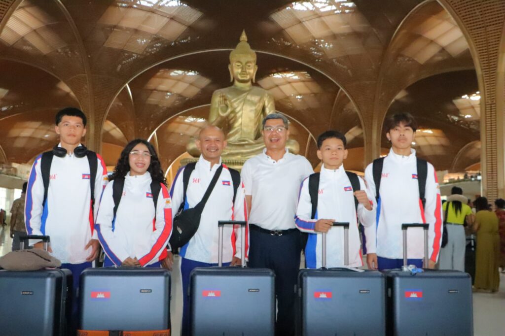 ភ្នំពេញ៖ នាថ្ងៃទី២៦ ខែតុលា ឆ្នាំ២០២៥ លោក ប៉ុន សុខ អគ្គនាយកនៃអគ្គនាយកដ្ឋានកីឡាបានដឹកនាំក្រុមកីឡាករ-កីឡាការិនីយូដូ និងជីជឺតស៊ូចំនួន ៨ នាក់ចូលរួមព្រឹត្តិការណ៍ប្រកួតកីឡាយុវជនអាស៊ី លើកទី៣ (3rd Asian Youth Games 2025) នៅប្រទេសបារ៉ែន នៅអាកាសយានដ្ឋានអន្តរជាតិតេជោ ក្នុងនោះដោយមានការជូនដំណើរពីលោក ផាត បញ្ញាសុជាតក៌តំណាងលោក យាន គីស៊ីវត្ថា ប្រធានមជ្ឈមណ្ឌលជាតិហ្វឹកហ្វឺនកីឡា និងជានាយរងបេសកម្ម។