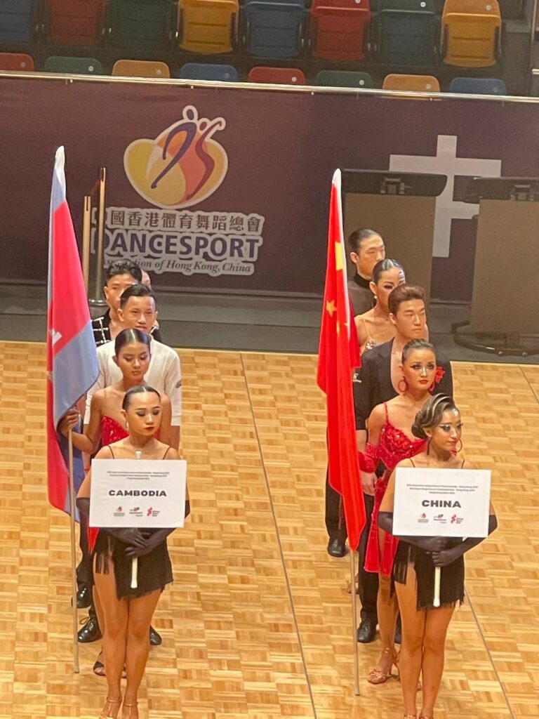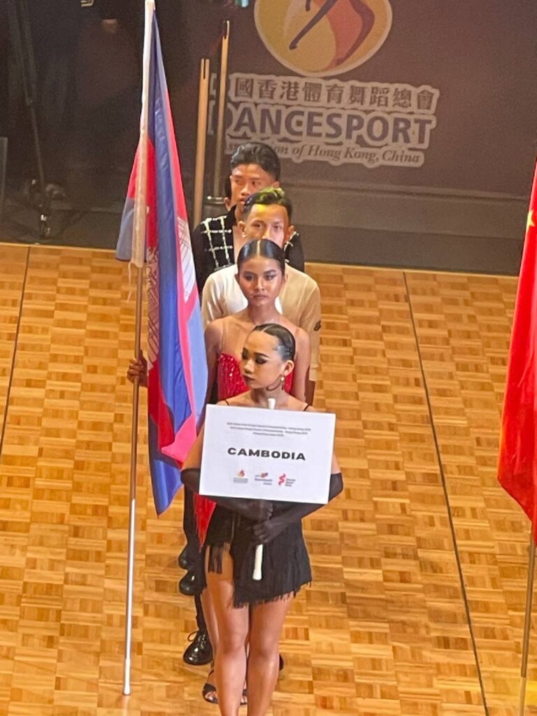 ភ្នំពេញ ៖នាថ្ងៃទី៦ ខែវិច្ឆិកា ឆ្នាំ២០២៥ ក្រុមគណៈប្រតិភូ គ្រូបង្វឹក និងកីឡាករ-កីឡាការិនីចំនួន៦ នាក់របស់កម្ពុជាបានចូលរួមពិធីបើកព្រឹត្តិការណ៍ការប្រកួតកីឡារាំ DSA ASIAN SOLO Single Dance Championship និង DSA ASIAN Single Dance Championship នៅទីក្រុងហុងកុង ប្រទេសចិនជាផ្លូវការ ដោយការប្រកួតនេះនឹងប្រព្រឹត្ដទៅចាប់ពីថ្ងៃទី៦ ដល់ថ្ងៃទី៩ ខែវិច្ឆិកា ឆ្នាំ២០២៥ ។