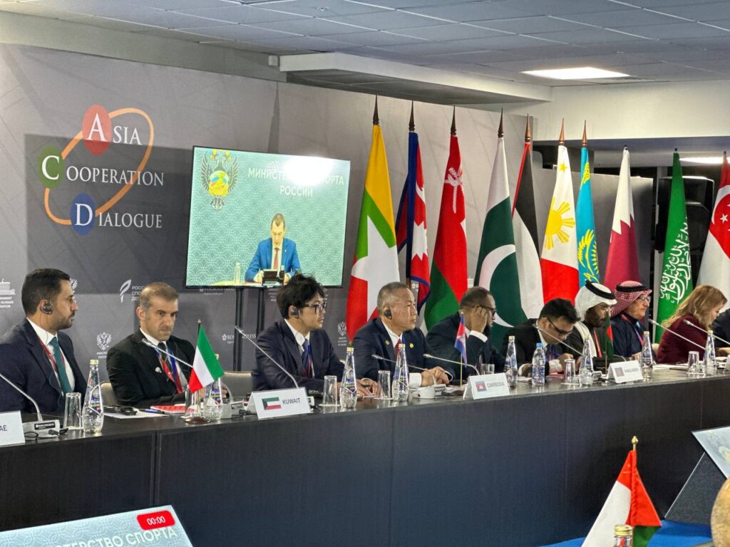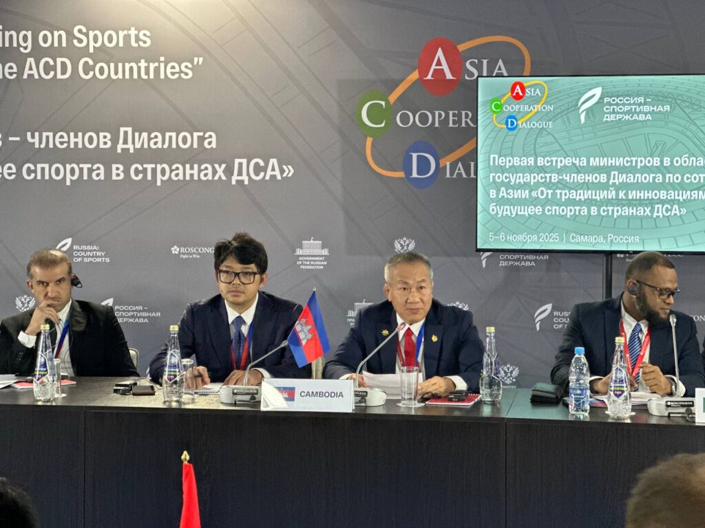 រុស្ស៊ី ៖ លោក វ៉ាត់ ចំរើន រដ្ឋលេខាធិការក្រសួងអប់រំ យុវជន និងកីឡា តំណាងលោកបណ្ឌិតសភាចារ្យ ហង់ជួន ណារ៉ុន ឧបនាយករដ្ឋមន្ត្រីក្រសួង អប់រំ យុវជន និងកីឡា អមដំណើរដោយ លោក វ៉ា វណ្ណៈ អគ្គនាយករងកីឡា និងក្រុមការងារ បានចូលរួមកិច្ចប្រជុំ រដ្ឋមន្ត្រីកីឡា នៃវេទិកាសន្ទនា កិច្ចសហប្រតិបត្តិការ អាស៊ីលើកទី១ ក្រោមប្រធានបទ “ផ្តើមពីប្រពៃណីឆ្ពោះទៅនវានុវត្តន៍ ៖ អនាគតកីឡា នៃប្រទេសសន្ទនាកិច្ចសហប្រតិបត្តិការអាស៊ី” នៅទីក្រុងសាម៉ារ៉ា ប្រទេសរុស្ស៊ី ចាប់ពីថ្ងៃទី៥ ដល់ទី៧ ខែវិច្ឆិកា ឆ្នាំ២០២៥ ។