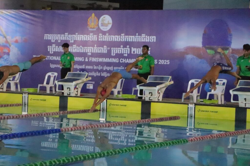 ភ្នំពេញ ៖ ព្រឹត្តិការណ៍ការប្រកួតកីឡាហែលទឹក និងហែលទឹកពាក់ជើងទា ជ្រើសរើសជើងឯកថ្នាក់ជាតិ ប្រចាំឆ្នាំ២០២៥ មានការចូលរួមប្រកួតពីសមគម-ក្លឹបហែលទឹកចំនួន ១២ ស្ថាប័ន ចាប់ពីថ្ងៃទី៦ ដល់ថ្ងៃទី៨ ខែវិច្ឆិកា ឆ្នាំ២០២៥ នៅអាងហែលទឹកនៃពហុកីឡដ្ឋានជាតិ រាជធានីភ្នំពេញ ការប្រកួតនេះ រៀបចំដោយសហព័ន្ធខ្មែរកីឡាហែលទឹក ក្រោមការប្រើប្រាស់ថវិកា គាំទ្រប្រចាំឆ្នាំ របស់ក្រសួងអប់រំ យុវជន នកីឡា ។