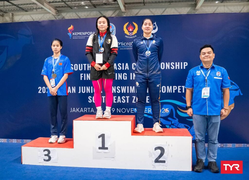 ភ្នំពេញ៖នាថ្ងៃទី១៦ ខែវិច្ឆិកា ឆ្នាំ២០២៥ កីឡាករ-កីឡាការិនីហែលទឹកពាក់ជើងទាកម្ពុជាដណ្តើមបានមេដាយ ៣ គ្រឿង គឺមេដាយប្រាក់ ១ គ្រឿង និងមេដាយសំរិទ្ធ ២ គ្រឿងក្នុងព្រឹត្តិការណ៍ប្រកួតកីឡាហែលទឹកពាក់ជើងទា ជ្រើសរើសជើងឯកអាស៊ីអាគ្នេយ៍ លើកទី២ ឆ្នាំ២០២៥ (The 2025 CMAS 2nd South East Asia Championship Finswimming Indoor) ដែលនឹងប្រព្រឹត្តទៅចាប់ពីថ្ងៃទី១៥ ដល់ថ្ងៃទី១៩ ខែវិច្ឆិកា ឆ្នាំ២០២៥ នៅហ្សារកាតា ប្រទេសឥណ្ឌូណេស៊ី។