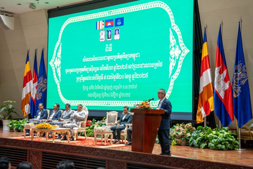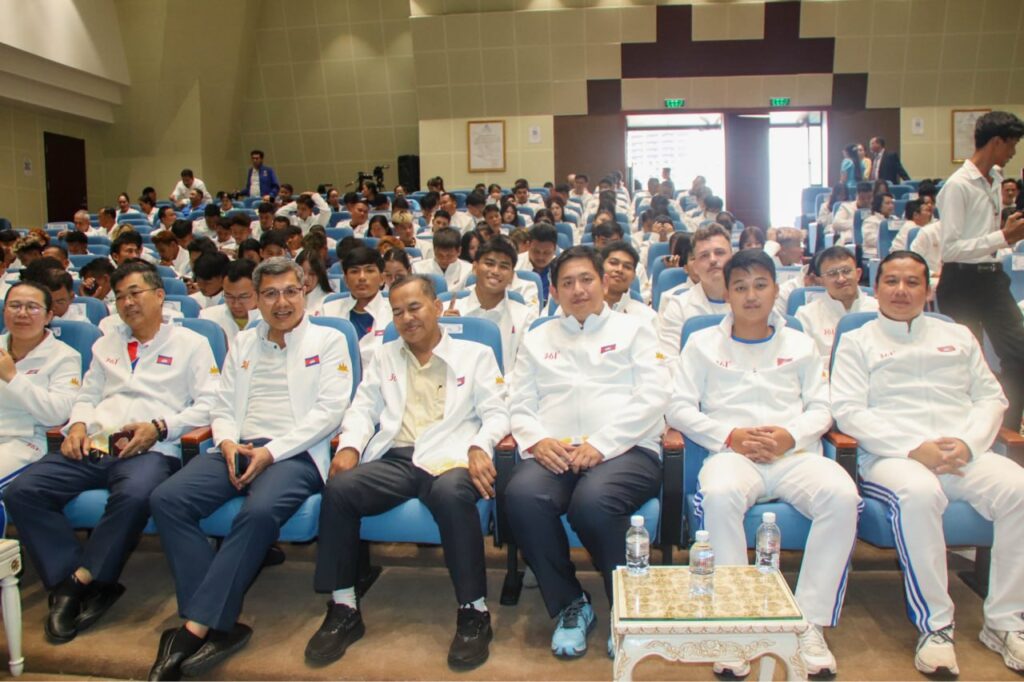 ភ្នំពេញ៖ នារសៀលថ្ងៃទី២៤ ខែវិច្ឆិកា ឆ្នាំ២០២៥ លោកបណ្ឌិតសភាចារ្យ ហង់ជួន ណារ៉ុន ឧបនាយករដ្ឋមន្ត្រី រដ្ឋមន្ត្រីក្រសួងអប់រំ យុវជន និងកីឡា តំណាងដ៏ខ្ពង់ខ្ពស់ សម្តេចមហាបវរធិបតី ហ៊ុន ម៉ាណែត នាយករដ្ឋមន្រ្តី នៃព្រះរាជាណាចក្រកម្ពុជា បានអញ្ជើញជាអធិបតីក្នុងពិធីសំណេះសំណាលជាមួយប្រតិភូកីឡាកម្ពុជា ចូលរួមការប្រកួតកីឡាស៊ីហ្គេម លើកទី៣៣ ឆ្នាំ២០២៥ នៅថៃ ដែលប្រព្រឹត្តទៅចាប់ពីថ្ងៃទី ៩ ដល់ថ្ងៃទី២០ ខែធ្នូ ឆ្នាំ២០២៥ និងមានការចូលរួមពីសំណាក់ ថ្នាក់ដឹកនាំក្រសួងអប់រំ យុវជន និងកីឡា គណៈកម្មការអូឡាំពិកកម្ពុជា សហព័ន្ធកីឡាជាតិ គ្រូបង្វឹក កីឡាករ កីឡាការិនីទាំង៣៣៣នាក់។