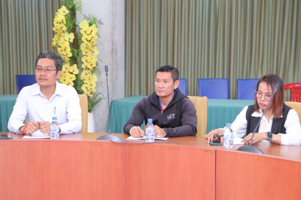ភ្នំពេញ ៖ លោក តែម ម៉ឺន អនុរដ្ឋលេខាធិការ ក្រសួងការពារជាតិ និង ប្រធានសហព័ន្ធកីឡាលើកទម្ងន់កម្ពុជា និងលោក Tom Liaw ប្រធានសហព័ន្ធលើកទម្ងន់សិង្ហបុរី និងអ្នកជំនាញសហព័ន្ធកីឡាលើកទម្ងន់អន្តរជាតិ ថ្ងៃទី២ ខែធ្នូ ឆ្នាំ២០២៥បានអញ្ជើញ ចូលរួមកិច្ចប្រជុំស្ដីពី “សាមគ្គីភាពអូឡាំពិក ដើម្បីការអភិវឌ្ឍន៍ គម្រោងប្រព័ន្ធកីឡាជាតិ” របស់សហព័ន្ធកីឡាលើកទម្ងន់កម្ពុជា នៅសាលប្រជុំគណៈកម្មាធិការជាតិ អូឡាំពិកកម្ពុជា ។