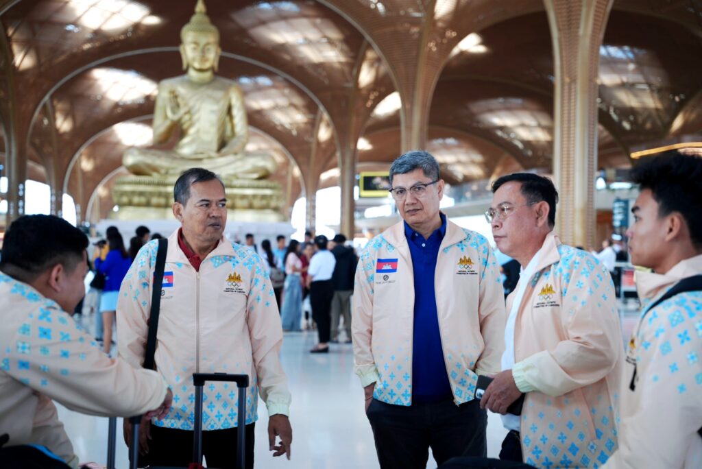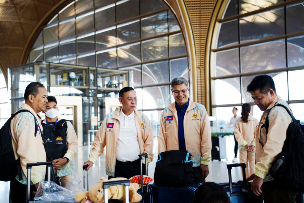 ភ្នំពេញ ៖ លោក យាន គីស៊ីវត្ថា ប្រធានមជ្ឈមណ្ឌលជាតិហ្វឹកហ្វឺនកីឡាតំណាងលោក ប៉ុន សុខ អគ្គនាយកនៃអគ្គនាយកដ្ឋានក្រសួងអប់រំ យុវជន និងកីឡានៅព្រឹកថ្ងៃទី៨ ខែធ្នូ ឆ្នាំ២០២៥ បានដឹកនាំគណៈប្រតិភូ និងក្រុមកីឡាករ-កីឡាការិនីចំនួន ២ ចំនួន ១៨ នាក់ បានចាកចេញពីមាតុប្រទេសរបស់ខ្លួន ឆ្ពោះទៅកាន់ទីក្រុងបាងកក ប្រទេសថៃ ដើម្បីចូលរួមព្រឹត្តិការណ៍ ការប្រកួតកីឡាស៊ីហ្គេម លើកទី៣៣ “SEA GAME 33” ឆ្នាំ២០២៥ ដែលនឹងចាប់ផ្តើមជាផ្លូវការ ពីថ្ងៃទី៩រហូតដល់ថ្ងៃទី២០ ខែធ្នូ ឆ្នាំ២០២៥។