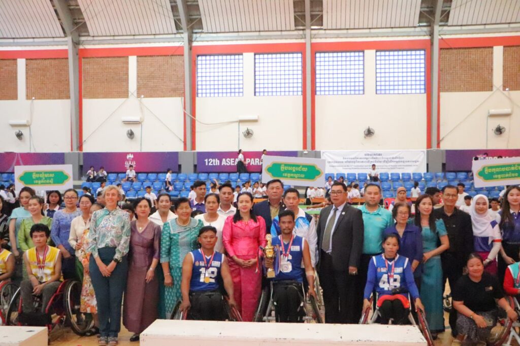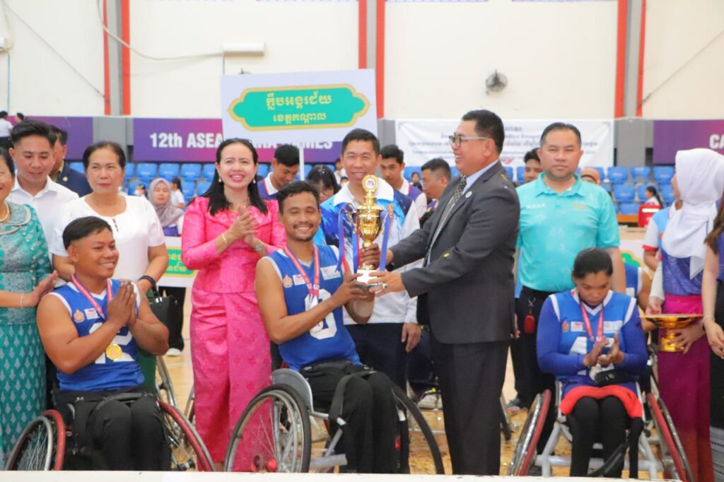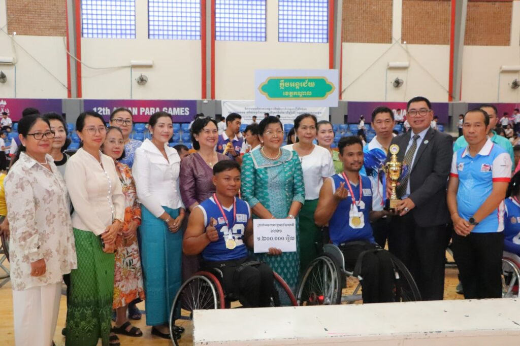 ក្នុងឱកាសពិធីបិទ និង ប្រគល់មេដាយ ជូនក្រុមកីឡាបាល់បោះរទេះជនពិការ ក្នុងការប្រកួតជ្រើសរើសជើងឯក បាល់បោះរទេះ ឆ្នាំ២០២៥ នៅថ្ងៃទី១២ ខែធ្នូ ឆ្នាំ២០២៥ នៅមជ្ឈមណ្ឌលជាតិហ្វឹកហ្វឺននៃពហុកីឡាដ្ឋានជាតិអូឡាំពិក លោក សន សុផល អគ្គនាយកស្តារសម្បទាតំណាងឲ្យលោក ជា សុមេធា រដ្ឋមន្ត្រីក្រសួងសង្គមកិច្ច អតីតយិទ្ធជន និងយុវនីតិសម្បទា លោក ដួង មាសចំរើន តំណាងក្រសួងអប់រំ យុវជន និងកីឡា អ្នកម្នាង ស៊ីសុវត្ថិ កន្ធីរ៉េត ប្រធានសហព័ន្ធកីឡា បាល់បោះរទេះជនពិការកម្ពុជា លោកជំទាវ ម៉ែន នារីវុឌ្ឍី ប្រធានកិត្តិយសសហព័ន្ធ កីឡាបាល់បោះរទេះជនជិការកម្ពុជា និងលោក លោកស្រី តំណាងអគ្គរាជ អគ្គរដ្ឋទូតប្រចាំព្រះរាជាណាចក្រកម្ពុជា ក្រសួងសង្គមកិច្ច អតីតយុទ្ធជន និងយុវនីតិសម្បទា ភ្ញៀវកិត្តិយជាតិ និងអន្តរជាតិ ។