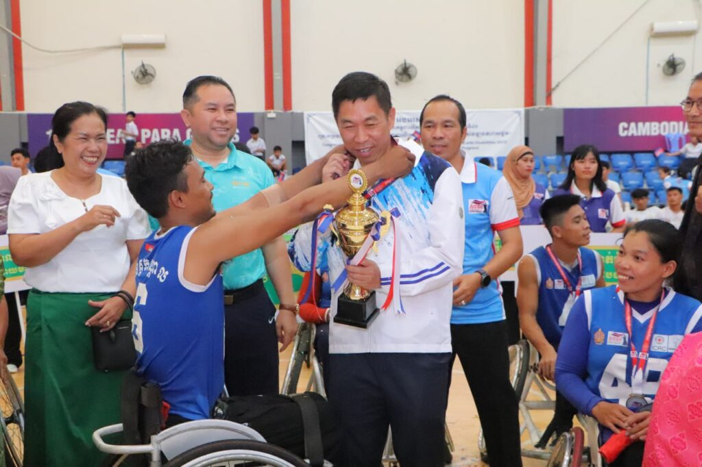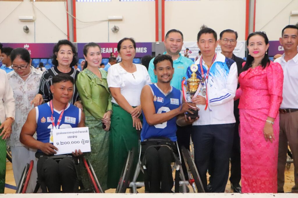 ភ្នំពេញ ៖ ក្លឹបកីឡាបាល់បោះរទេះជនពិការ អង្គរជ័យ ខេត្តកណ្តាល ដណ្តើមបានមេដាយមាស បន្ទាប់ពីក្លឹបកីឡា បាល់បោះរទេះជនពិការ ឃ្មុំមាសកំពង់ស្ពឺ ខេត្តកំពង់ស្ពឺ នៅវគ្គផ្តាច់ព្រ័ត្រក្នុងការប្រកួតជ្រើសរើសជើងឯក បាល់បោះរទេះ ឆ្នាំ២០២៥ដើម្បីអបអរសាទរ ទិវាជនមានពិការភាពកម្ពុជាលើកទី២៧ និងអន្តរជាតិលើកទី ៤៣ ក្រោមប្រធានបទ “បរិយាបន្នពិការ ភាពលើគ្រប់វិស័យ ដើម្បីលើកកម្ពស់ អភិឌ្ឍភាពសង្គម” ការប្រកួតនេះរៀបចំ ដោយសហព័ន្ធ កីឡាបាល់បោះរទេះជនពិការកម្ពុជា បានសហការជាមួយសហព័ន្ធកីឡាបាល់បោះកម្ពុជា ។