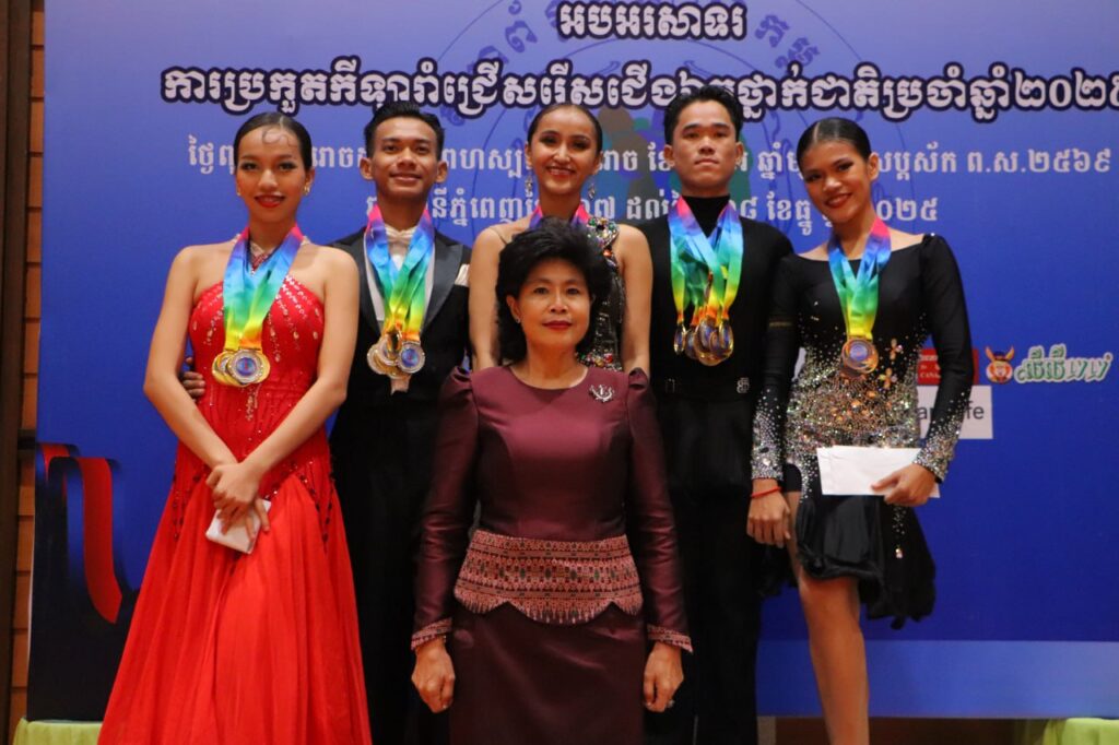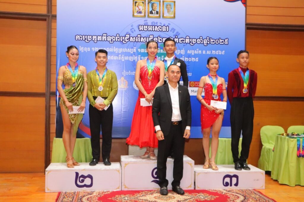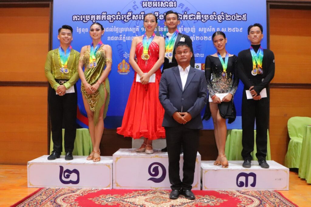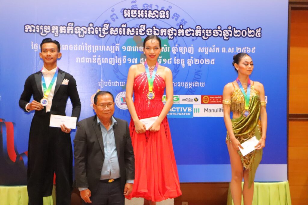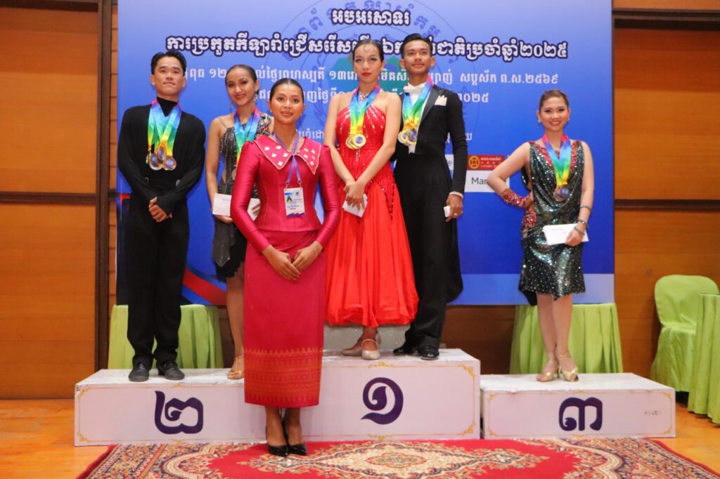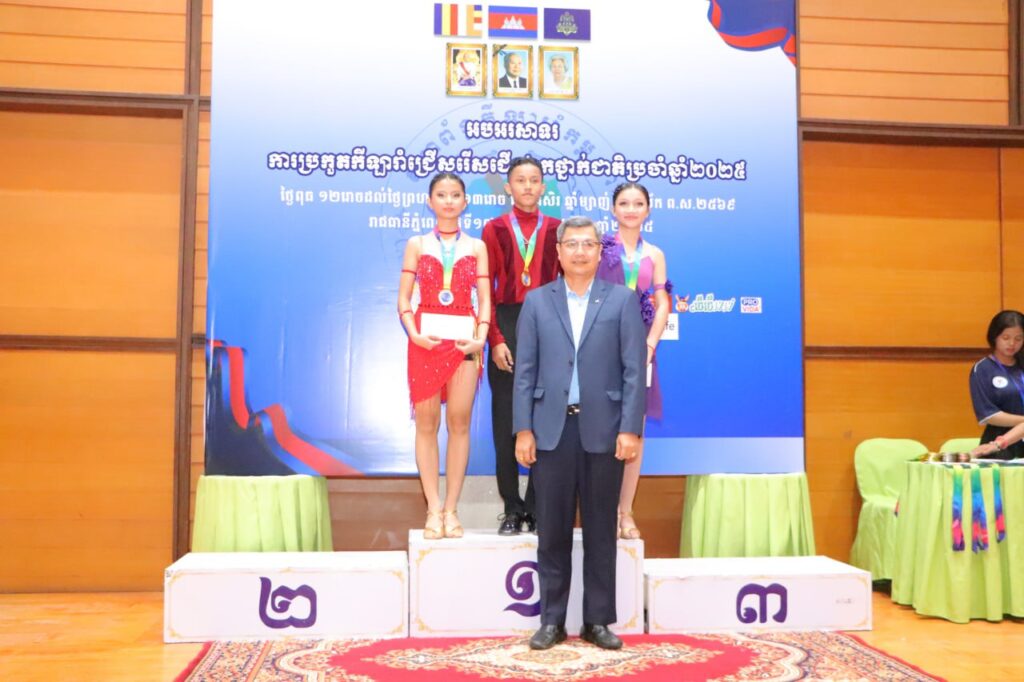 ក្នុងឱកាសពិធី បិទការប្រកួតជើងឯកជាផ្លូវការ នាថ្ងៃទី១៨ ខែធ្នូ ឆ្នាំ២០២៥ ដោយមានការអញ្ជើញចូលរួមពីសំណាក់ លោកស្រី ញ៉ែម មរកត រដ្ឋលេខាធិការ ក្រសួងកិច្ចការនារី និងប្រធានសហព័ន្ធកីឡារាំកម្ពុជា លោក ផាត់ បញ្ញាសុជាតក អនុប្រធានមជ្ឈមណ្ឌលជាតិហ្វឹកហ្វឺន និងលោក ទុយ ប៊ុនហឿន អនុប្រធាននាយកដ្ឋានកីឡាមហាជន និងកីឡាជំនាញ និងកញ្ញា កុន អេនណា ទូតសុឆន្ទះរបស់ក្រសួងកិច្ចការនារី នៅមជ្ឈមណ្ឌលសហប្រតិបត្តិកម្ពុជា-ជប៉ុន។