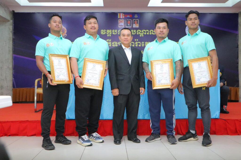 ភ្នំពេញ ៖ លោក ស៊ីយ៉ុន ស្ថាពរ អនុប្រធាននាយកដ្ឋានកីឡា ជំនួញនិងកីឡាមហាជន តំណាងលោក ប៉ែន វុទ្ធី ប្រធាននាយកដ្ឋានកីឡា ជំនួញនិងកីឡា មហាជន និងលោក ដែក ភារៈ អគ្គលេខាធិការរង តំណាង លោក វ៉ាត់ ចំរើន អគ្គលេខាធិការនៃសហព័ន្ធកីឡាការ៉ាតេកម្ពុជានាថៃ្ងទី១៣ ខែមករា ឆ្នាំ២០២៦ បានអញ្ជើញជា កិត្តិយសក្នុងពិធីបិទ វគ្គបណ្តុះបណ្តាល “ច្បាប់ការប្រកួតកីឡា ការ៉ាតេពិភពលោក” នៅទីសា្នក់ការគណៈកម្មាធិការជាតិអូឡាំពិកកម្ពជា (NOCC) រៀបចំដោយសហព័ន្ធកីឡាការ៉ាតេកម្ពុជា ក្រោមការប្រើប្រាស់ថវិកាគាំទ្រ ប្រចាំឆ្នាំរបស់ក្រសួងអប់រំ យុវជន និងកីឡា។