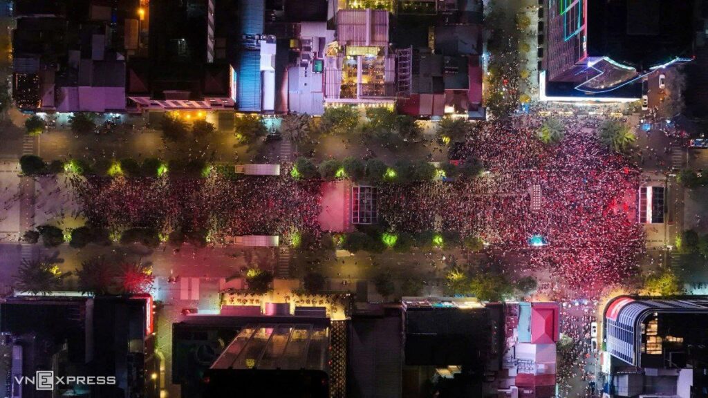 ផ្លូវដើររបស់ Nguyen Hue មានប្រវែងជាង ៥០០ ម៉ែត្រ នៅទីក្រុងហូជីមិញ ត្រូវបានលាបពណ៌ក្រហមដោយ មនុស្សរាប់ពាន់នាក់ ត្រូវបានបង្ហាញដើម្បីគាំទ្រក្រុមម្ចាស់ផ្ទះរបស់ពួកគេតាមរយៈអេក្រង់ LED។ ទីក្រុងនេះបានដំឡើងអេក្រង់ LED ធំៗ ចំនួន ៦ នៅលើផ្លូវដើរ ដើម្បីបម្រើអ្នកគាំទ្រក្នុងអំឡុង ពេលការប្រកួតវគ្គពាក់កណ្តាលផ្តាច់ព្រ័ត្រ ក៏ដូចជាការប្រកួតដណ្តើមចំណាត់ថ្នាក់លេខ ២ នៅថ្ងៃសុក្រ និងវគ្គផ្តាច់ព្រ័ត្រនៅថ្ងៃសៅរ៍។