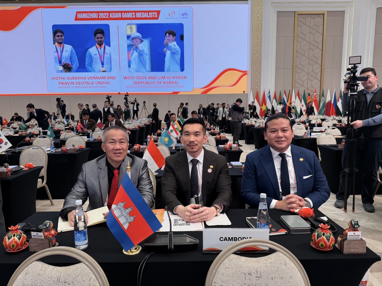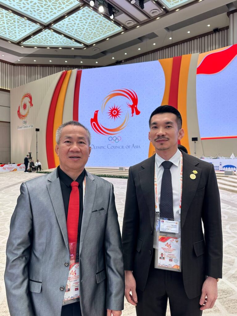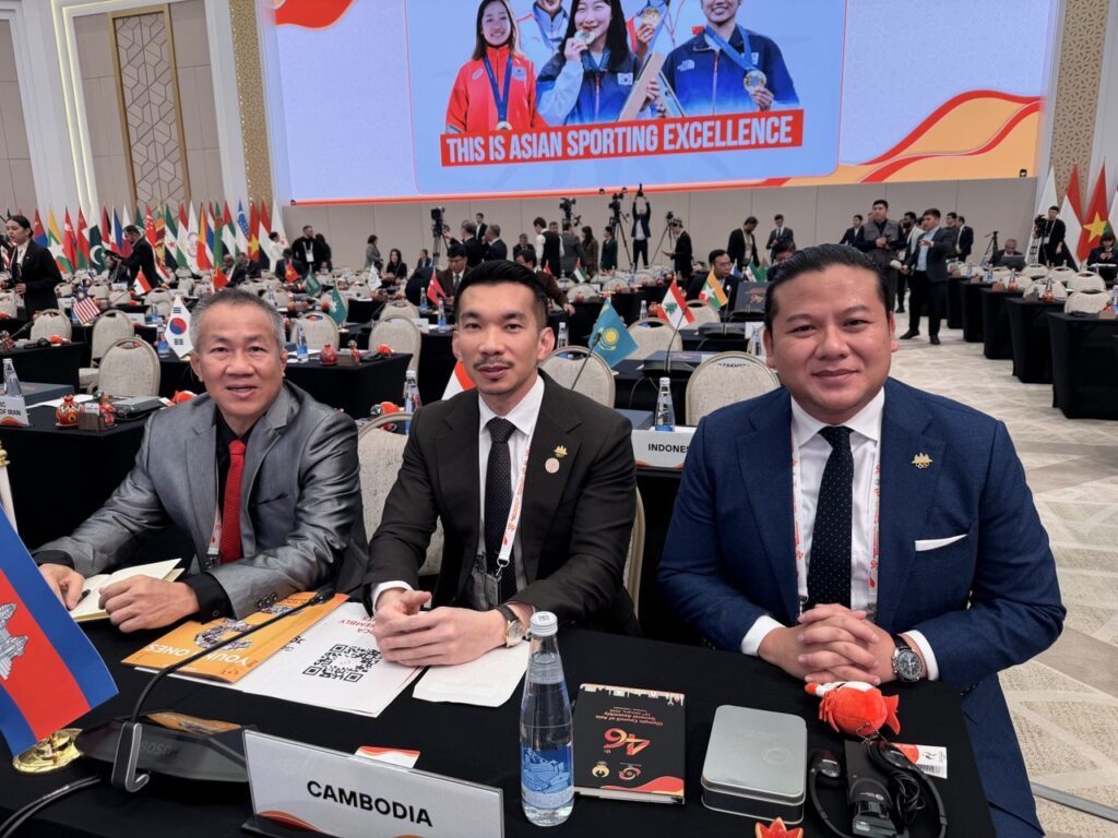 លោក វ៉ាត់ ចំរើន អគ្គលេខាធិការតំណាងលោក ថោង ខុន ប្រធានអូឡាំពិកកម្ពុជា និងលោក សេង វណ្ណៈ អភិបាលរង តំណាងដ៏លោក ឃួន ស្រេង អភិបាល នៃគណអភិបាលរាជធានីភ្នំពេញ បានចុះហត្ថលេខាជាមួយ ឯឧ Timothy Fox ប្រធានស្តីទីក្រុមប្រឹក្សាអូឡាំពិកអាស៊ី OCA ។