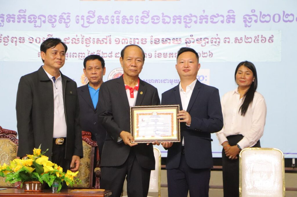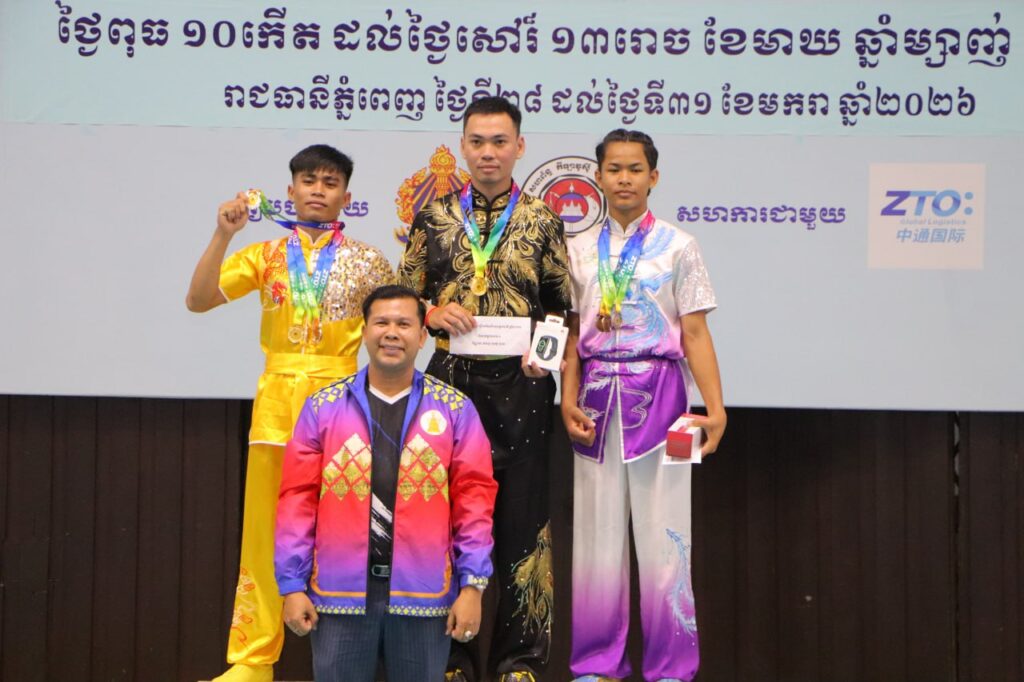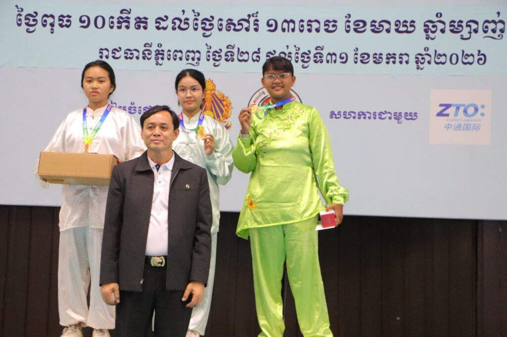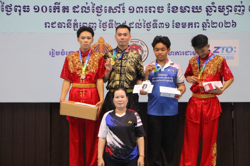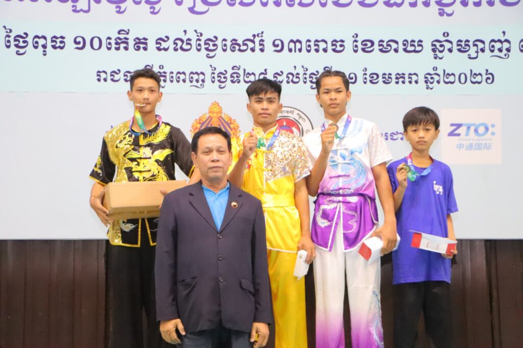 ភ្នំពេញ៖ នាថ្ងៃទី៣១ ខែមករា ឆ្នាំ ២០២៦នេះ លោក កែ ប៊ុនខៀង រដ្ឋលេខាធិការក្រសួងអប់រំ យុវជន និងកីឡា ឧកញ៉ា ស្រ៊ុន ប៊ុនថាត ប្រធានសហព័ន្ធកីឡាវូស៊ូកម្ពុជា ព្រមទំាងអ្នកតំណាងឲ្យក្រុមហ៊ុនដៃគូឧបត្ថម្ភ Z.T.O បានអញ្ជើញអធិបតីចូលរូមពិធីបិទការប្រកួតកីឡាវូស៊ូជ្រើសរើសជើងឯកប្រចាំឆ្នាំ២០២៥ រយៈពេល ៤ ថ្ងៃ ចាប់ពីថ្ងៃទី២៨ ដល់ថ្ងៃទី៣១ ខែមករា ឆ្នាំ២០២៦ នៅវិមានក្នុងពហុកីឡដ្ឋានជាតិអូឡាំពិក ការប្រកួតនេះរៀបចំដោយសហព័ន្ធកីឡាវូស៊ូកម្ពុជា ក្រោមការប្រើប្រាស់ថវិកា ឧបត្ថម្ភប្រចាំឆ្នាំ របស់ក្រសួងអប់រំ យុវជន និងកីឡា ឆ្នាំ២០២៥។