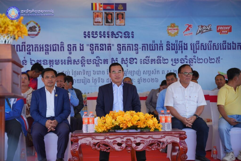 ខេត្តស្វាយរៀង៖ ថ្ងៃទី៧ ខែកុម្ភៈ ឆ្នាំ២០២៦ លោក សរ សិទ្ធិ អនុប្រធានទី២សហព័ន្ធតំណាងលោក អភិសន្តិបណ្ឌិត ស សុខា ឧបនាយករដ្ឋមន្ត្រី រដ្ឋមន្ត្រីក្រសួងមហាផ្ទៃ និងជាប្រធានសហព័ន្ធកីឡាទូកកានូ និងរ៉ូអ៊ីងកម្ពុជា បានអញ្ជើញជាអធិបតី ក្នុងពិធី “បើក” ការប្រកួតកីឡាទូក “ង”ទូកនាគ ទូកផ្កាចារ ទូកកានូ-កាយ៉ាក់ និងទូករ៉ូអ៊ីង ជ្រើសរើសជើងឯកថ្នាក់ជាតិ “ពានរង្វាន់ ឯកឧត្តមអភិសន្តិបណ្ឌិត ស សុខា”លើកទី២ ឆ្នាំ២០២៥ ដែលបានប្រព្រឹត្តទៅទន្លេវ៉ៃគោ ក្រុងស្វាយរៀង ខេត្តស្វាយរៀង។