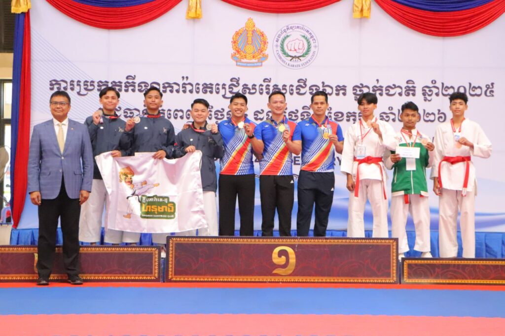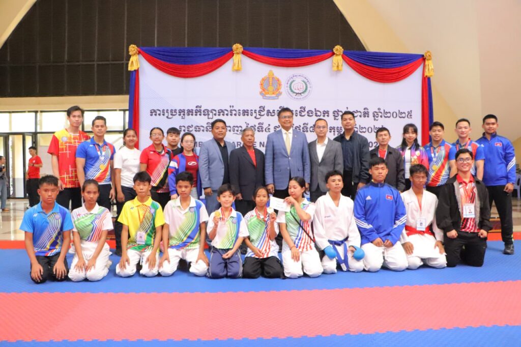 ភ្នំពេញ ៖ ក្រសួងការពារជាតិ ក្រសួងសេដ្ឋកិច្ច ក្លឹបការ៉ាតេ-ដូ ហនុមាន និងក្រសួងមហាផ្ទៃ ជាក្រុមដែលមាន ឈ្នះ មេដាយមាស ច្រើនជាងគេក្នុងចំណោមសមាគម និងក្លិបកីឡាការ៉ាតេ-ដូទំាង ៣៤ ចូលរួមព្រឹត្តិការណ៍ការប្រកួតកីឡា ការ៉ាតេ-ដូជ្រើសរើសជើងឯក ថ្នាក់ជាតិឆ្នាំ ២០២៥ រៀបចំឡើង ដោយសហព័ន្ធកីឡាការ៉ាតេ-ដូកម្ពុជា ក្រោមការប្រើប្រាស់ ថវិកាគាំទ្រប្រចាំឆ្នាំរបស់ក្រសួងអប់រំ យុវជន និងកីឡា។ នៅសាលក្នុងសាកលវិទ្យាល័យភូមិន្ទភ្នំពេញ ។