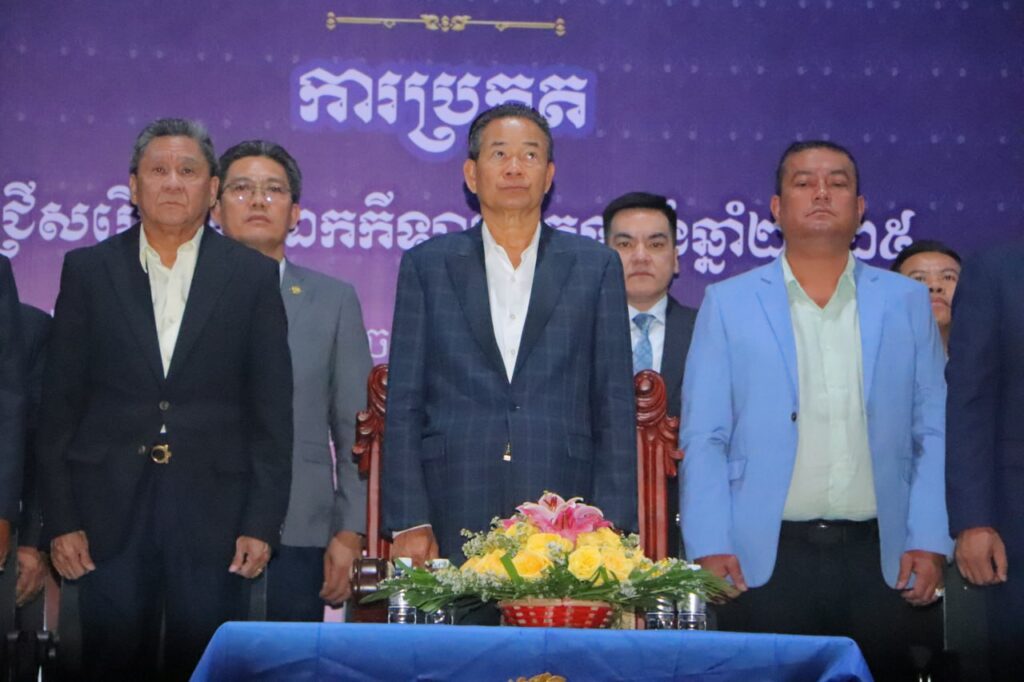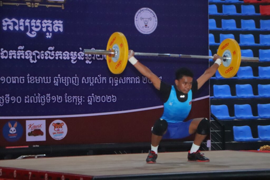 ភ្នំពេញ ៖នាថ្ងៃទី ១១ ខែកុម្ភៈ ឆ្នាំ២០២៦ លោក តែម ម៉ឺន អនុរដ្ឋលេខាធិការ ក្រសួងការពារជាតិ និងប្រធានសហព័ន្ធកីឡា លើកទម្ងន់កម្ពុជា និងលោក វ៉ា ស៊ិនភីរម្យ ជាទីប្រឹក្សាជាន់ខ្ពស់ ទទួលបន្ទុកបេសកកម្ម ពិសេសនៃគណៈកម្មាធិការជាតិ អូឡាំពិកកម្ពុជាតំណាង លោក វ៉ាត់ ចំរើន អគ្គលេខាធិការគណៈកម្មាធិការជាតិអូឡាំពិកកម្ពុជា បានអញ្ជើញអធិបតីភាព ក្នុងពិធីបើកការប្រកួតកីឡាទម្ងន់ជ្រើសរើសជើងឯកថ្នាក់ជាតិឆ្នាំ២០២៥ មជ្ឈមណ្ឌលកីឡាកងយោធពលខេមរភូមិន្ទ រៀបចំដោយសហព័ន្ធកីឡាលើកទម្ងន់កម្ពុជាឆ្នាំ២០២៥ ក្រោមការប្រើប្រាស់ថវិកាគាំទ្រប្រចាំឆ្នាំរបស់ក្រសួងអប់រំ យុវជន និងកីឡា ។