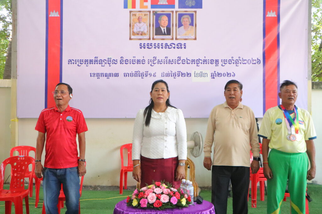 កណ្តាល៖ នាថ្ងៃទី២២ ខែមីនា ឆ្នាំ២០២៦ នេះ លោកស្រី ឃុន សុខុម អនុប្រធានមន្ទីរអប់រំកាយ និងកីឡាខេត្តកណ្តាលតំណាងឲ្យលោក ចេង សំអុលប្រធានមន្ទីរអប់រំកាយ និងកីឡាខេត្តកណ្តាល និងលោក ពៅ វណ្ណា ប្រធានការិយាល័យអប់រំកាយ និងកីឡា នៃមន្ទីរអប់រំ ព្រមទំាងក្លិបកីឡាប៊ូល និងប៉េតង់ចំនួន ២៦ បានអញ្ជើញចូលរួមក្នុងពិធីបិទការប្រកួតកីឡា ប៉េតង់ និងប៉ូលជ្រើសរើសជើងឯកថ្នាក់ខេត្តកណ្តាលឆ្នាំ២០២៦ នៅតាមទីលានប៉េតង់មន្ទីរអប់រំកាយ និងកីឡាខេត្តកណ្តាល ដែលជាសកម្មភាពមួយដើម្បីបំផុសប្រជាពលរដ្ឋលេងកីឡាការប្រកួតរៀបចំដោយការិយាល័យអប់រំកាយ និងកីឡា នៃមន្ទីរអប់រំ យុវជន និងកីឡាខេត្តកណ្តាល ។