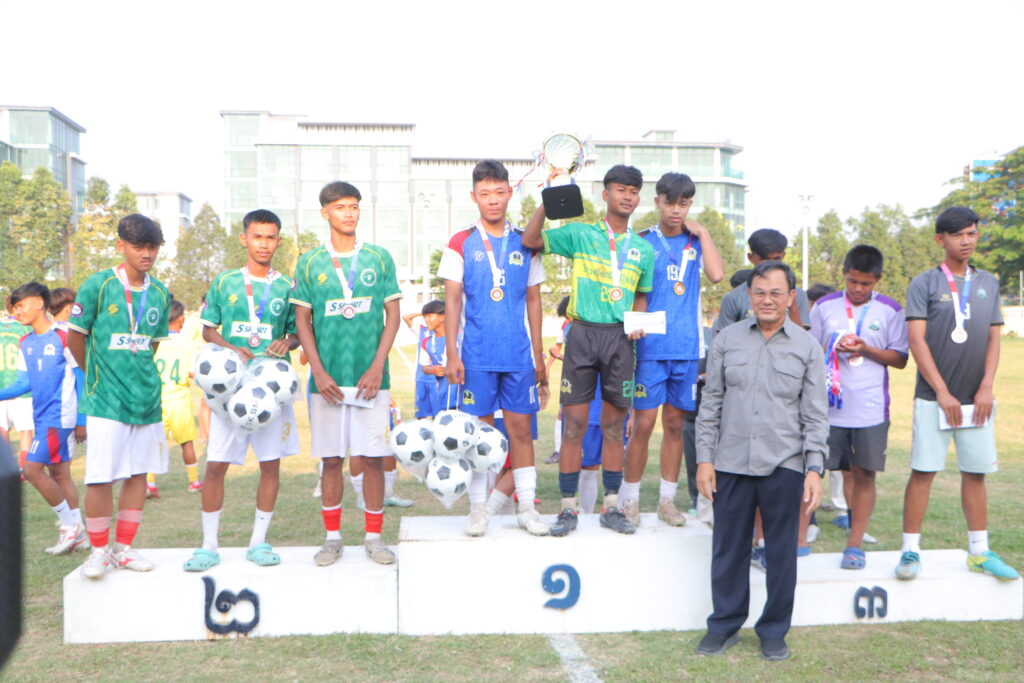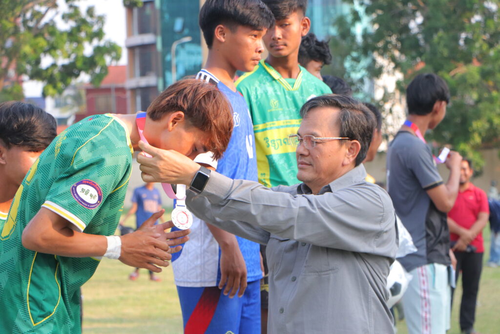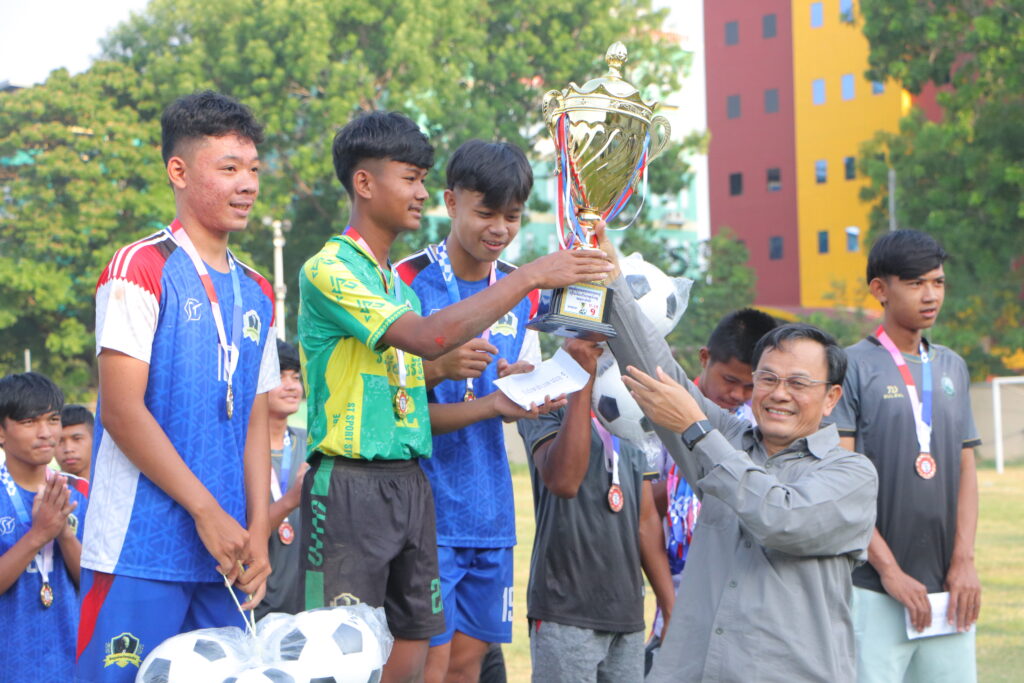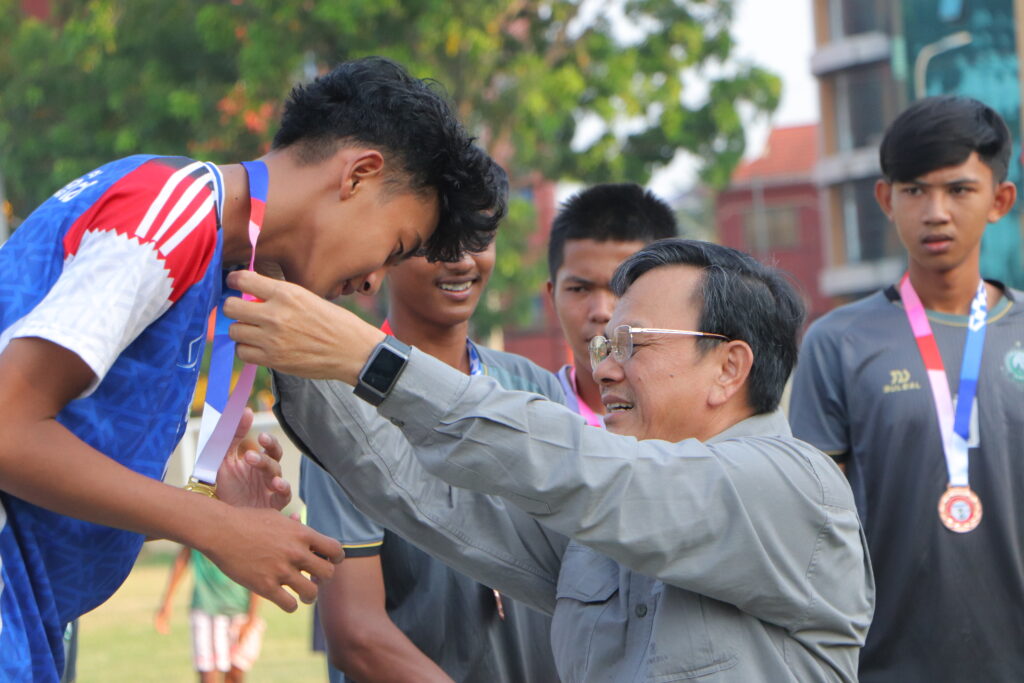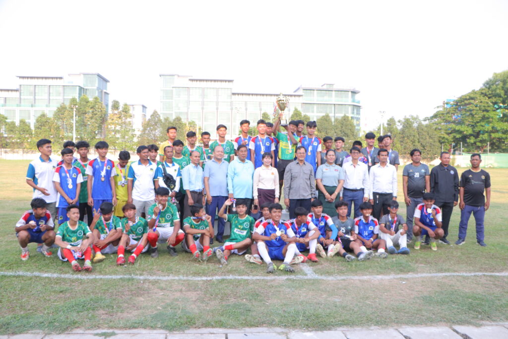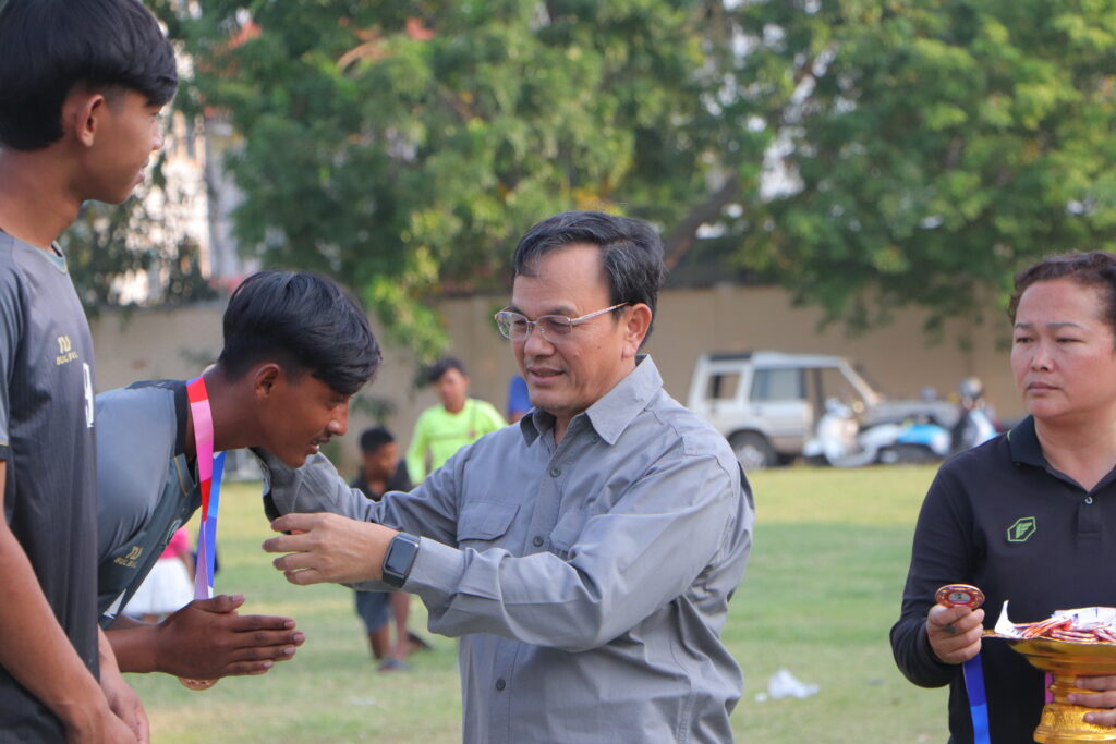 ក្នុងឱកាសប្រគល់ជយលាភី និងមេដាយជូនក្រុមកីឡាករបាល់ទាត់នាថ្ងៃទី២៨ ខែមីនា ឆ្នាំ២០២៦ ដោយមានការអញ្ជើញចូលរួមជាកិត្តិយសពីសំណាក់លោក ចេង សំអុល ប្រធានមន្ទីរអប់រំ យុវជន និងកីឡាខេត្តកណ្តាល លោកស្រី ឃុន សុខុម អនុប្រធានមន្ទីរអប់រំកាយ និងកីឡាខេត្តកណ្តាល និងលោក ពៅ វណ្ណា ប្រធានការិយាល័យអប់រំកាយ និងកីឡា និងប្រធានការិយាល័យនានានៃមន្ទីរអប់រំខេត្ត។