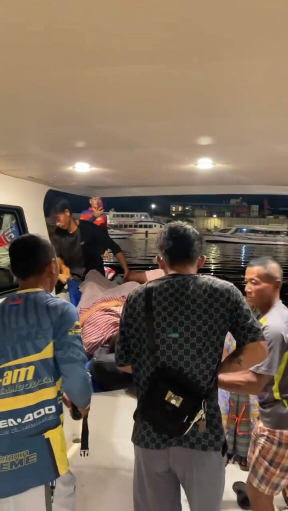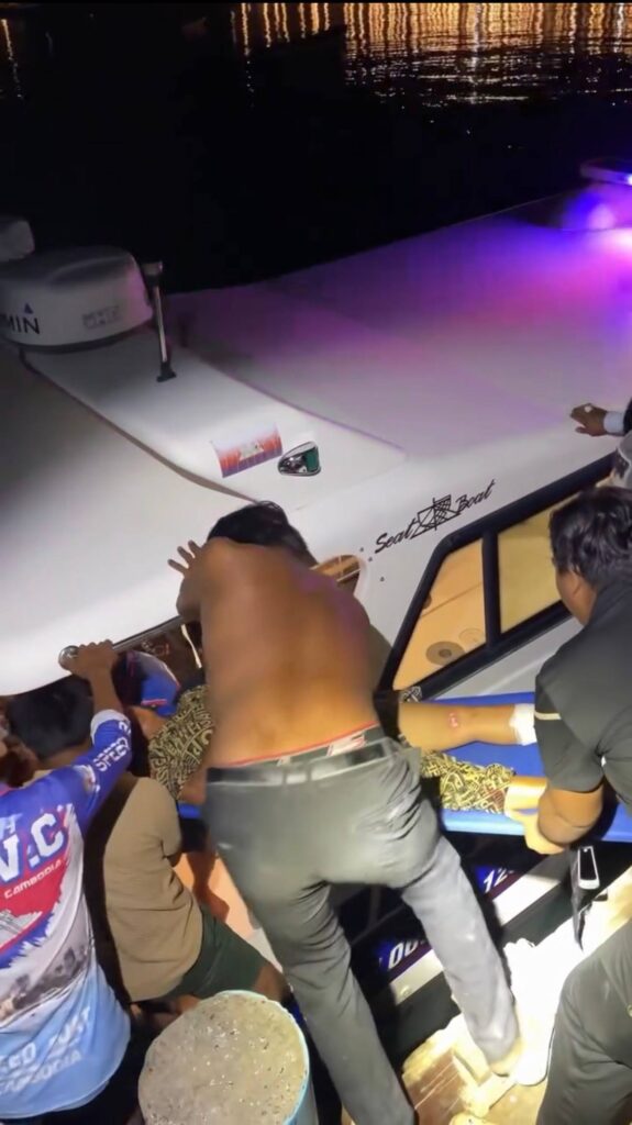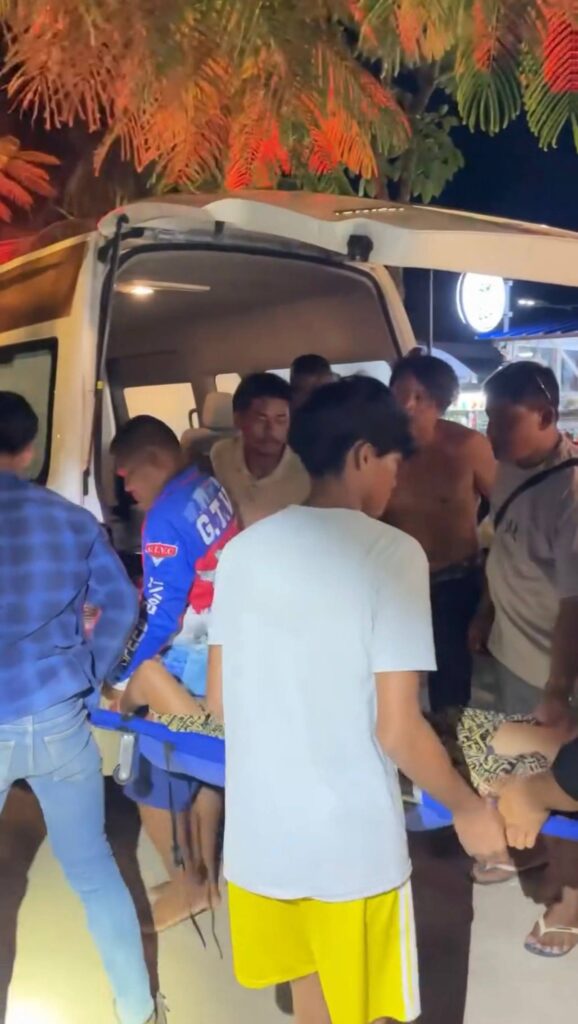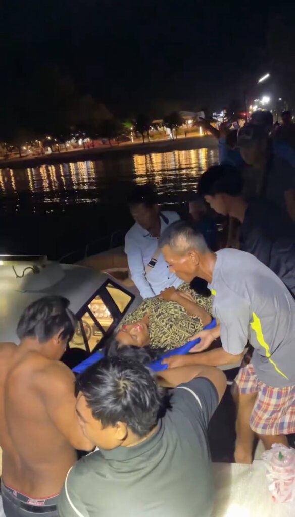 បុរសស្រ្តីខាងលើ ត្រូវបានក្រុមការងារ របស់អ្នកឧកញ៉ា បញ្ជូនតាមអូប័រ មកកាន់កំពង់ផែទេសចរណ៍ ក្រុងព្រះសីហនុដោយសុវត្ថិភាព នឹងបន្តដឹកតាមរថយន្តសង្គ្រោះក្រមហ៊ុន GTVC របស់អ្នកឧកញ៉ា យកទៅសង្គ្រោះបន្ទាន់នៅមន្ទីរពេទ្យ ក្នុងខេត្តព្រះសីហនុ៕